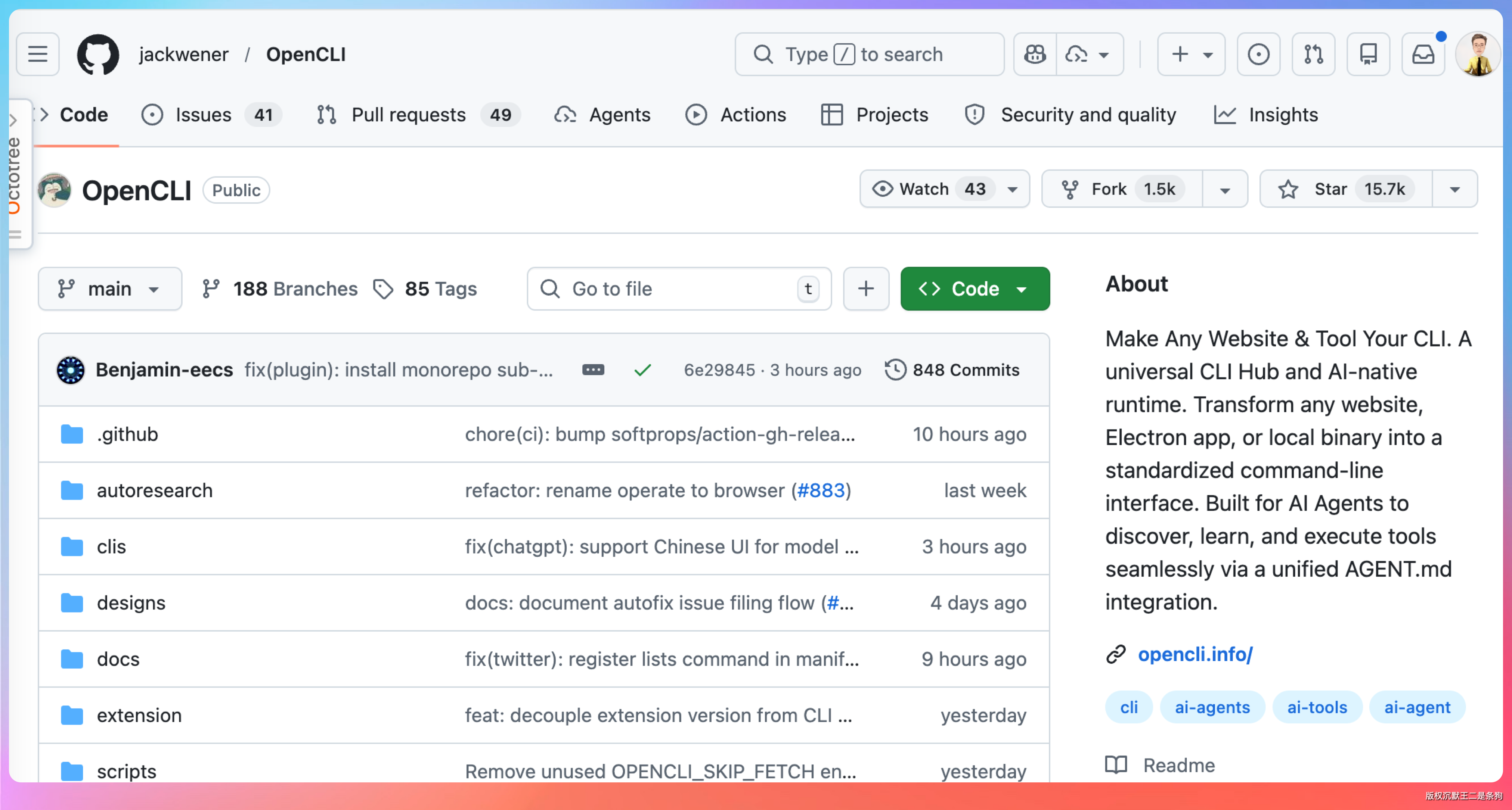 GitHub 地址:https://github.com/jackwener/opencli
