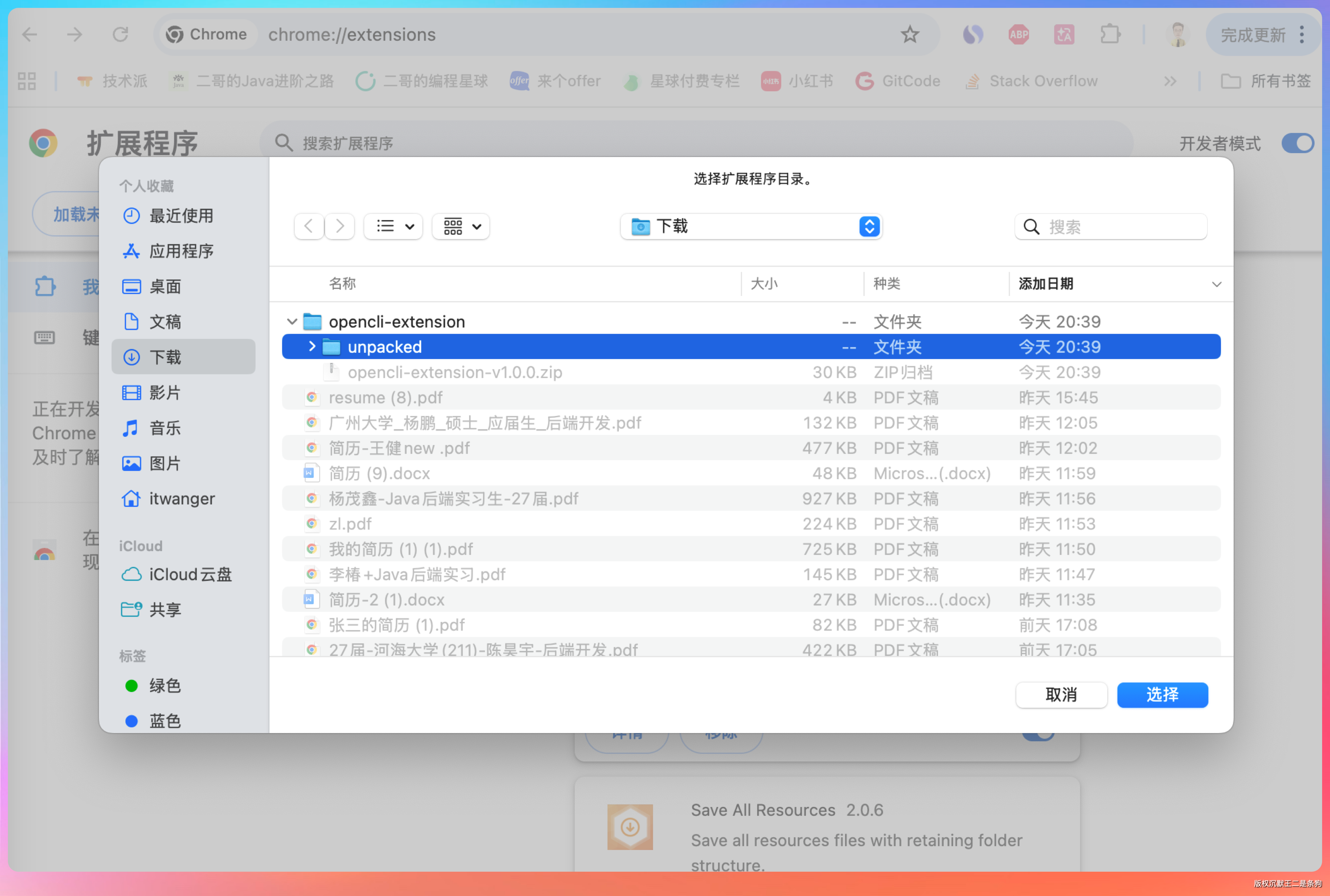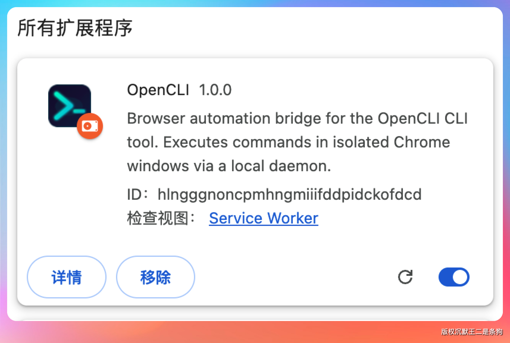 装完之后要在 Chrome 打开 chrome://extensions,开启“开发者模式”,点“加载已解压的扩展程序”,选择 Chrome/Chromium 的 unpacked 目录,Agent 已经帮我们下载解压到这个目录了。