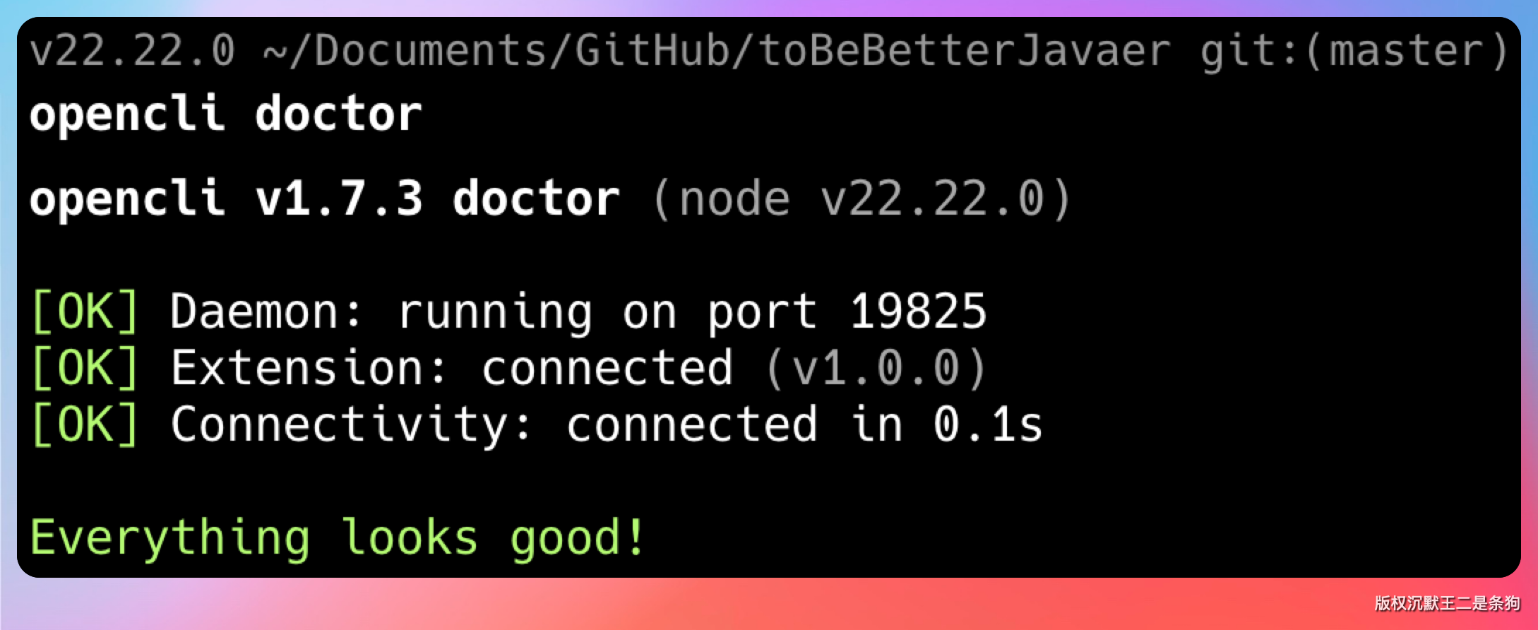 完事再执行 opencli doctor 确认一下: