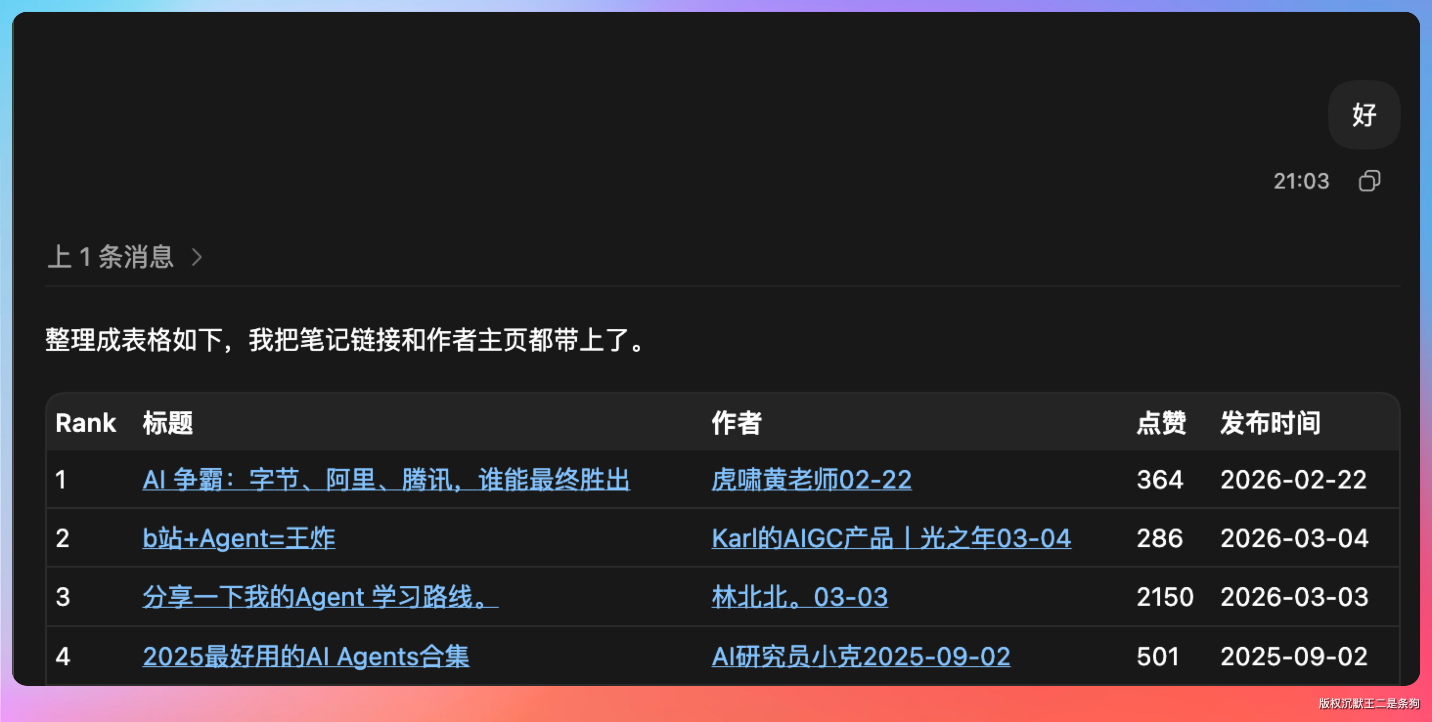 更妙的是,因为输出是结构化的 JSON,我可以直接把结果喂给 Codex,让它帮我整理成表格。