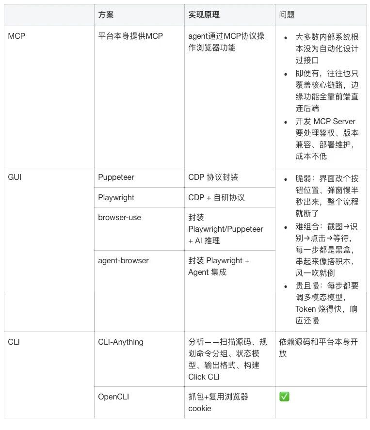 从 GUI 自动化到 OpenCLI,Web 自动化的解决方案越来越适配 Agent 了。
