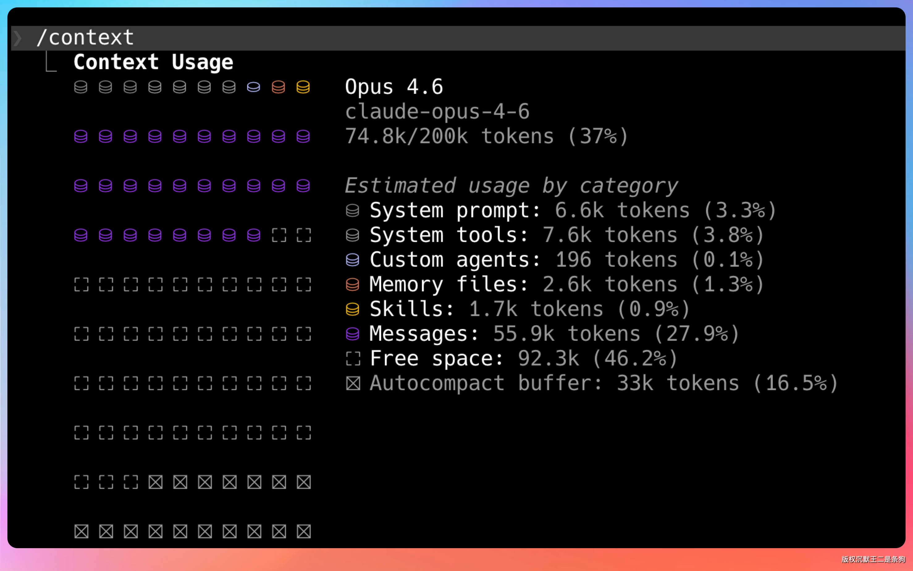 比如自动压缩(compaction)——当上下文逼近窗口上限时,系统会自动把前面的内容摘要化,保留关键信息,丢掉冗余细节。