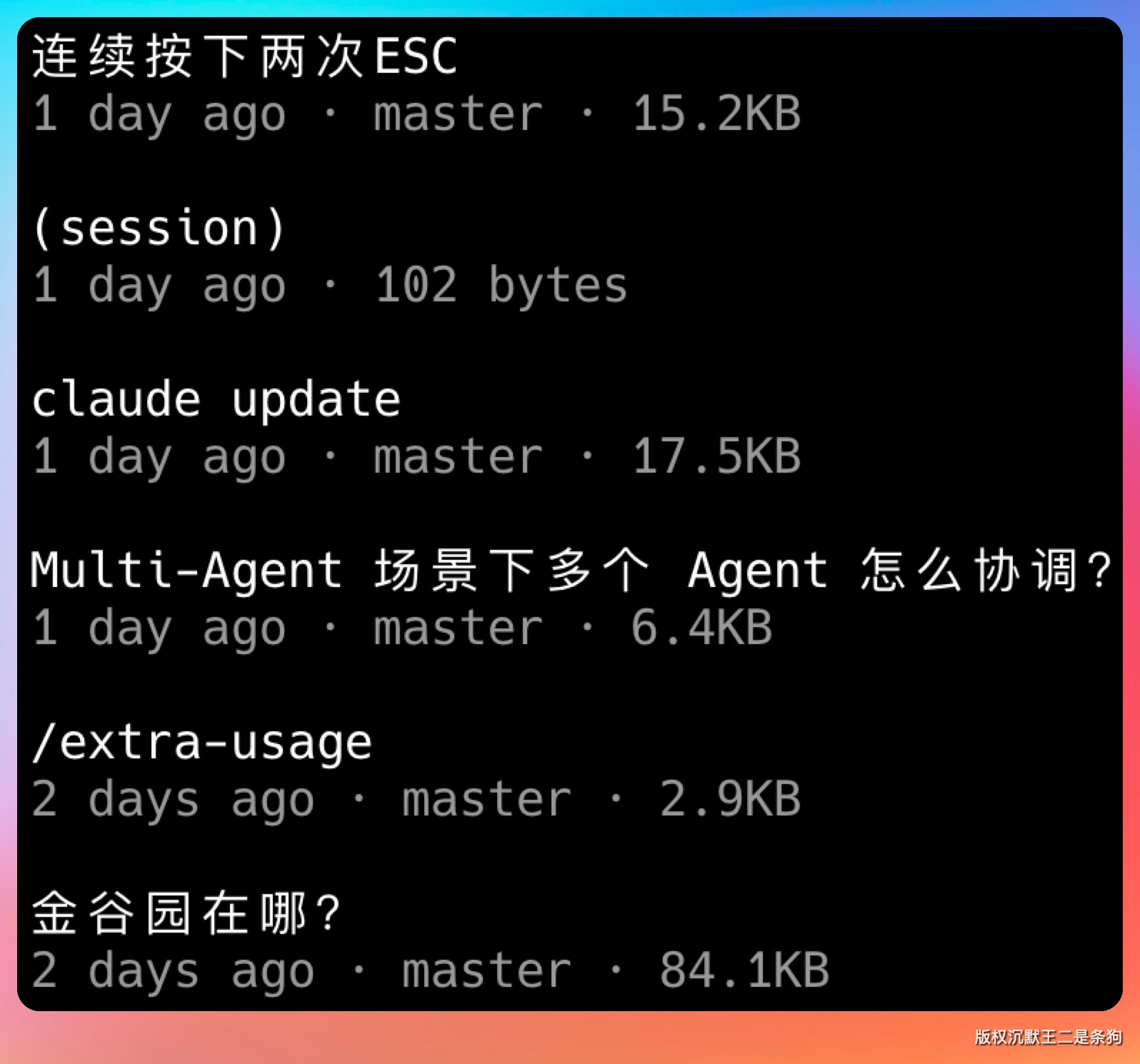 Claude Code 的 Session 管理相当巧妙——它把项目级 Memory(CLAUDE.md)、全局 Memory、临时 Memory 分开管理,不同粒度的记忆走不同通道。