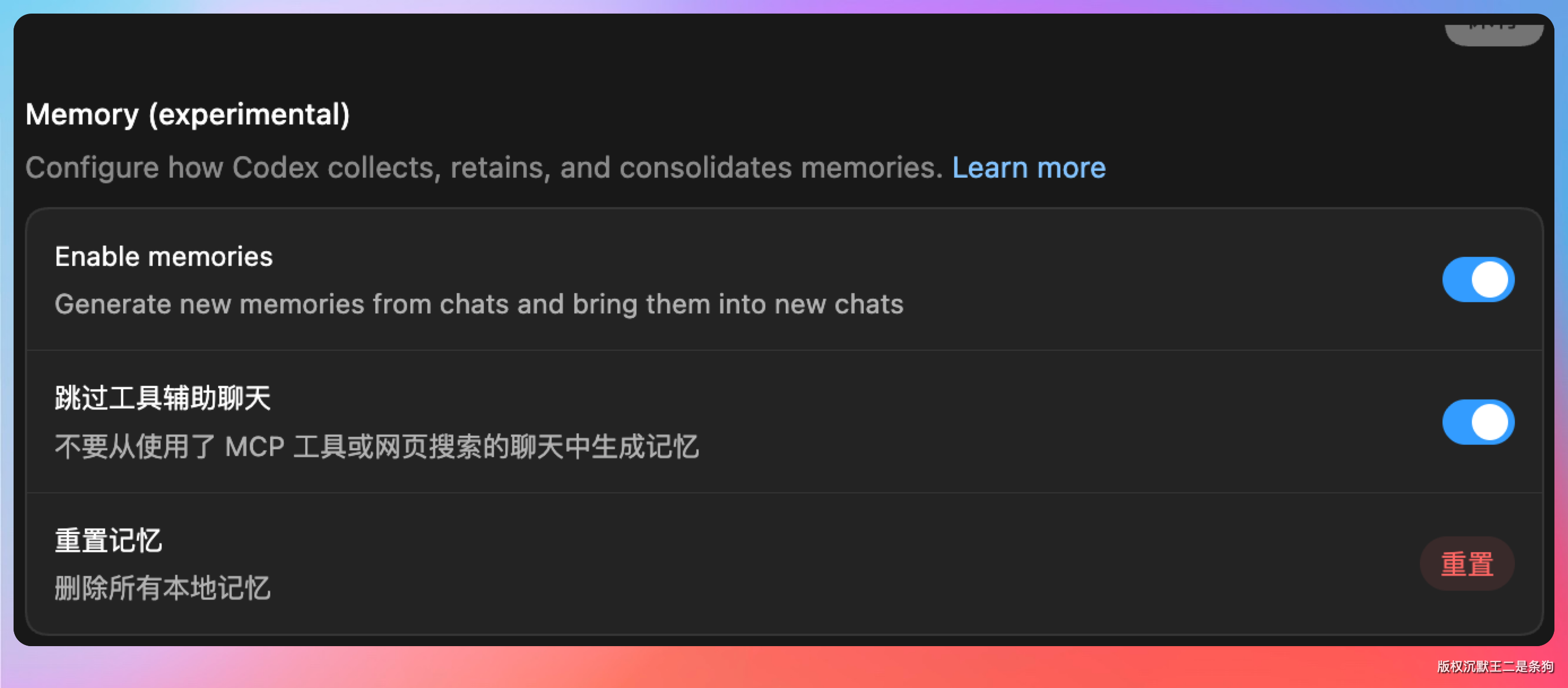 这个功能对长期项目特别有用。之前每次开新对话,Codex 都要从头了解项目背景、代码风格、命名约定。现在它会记住这些,下次直接用。