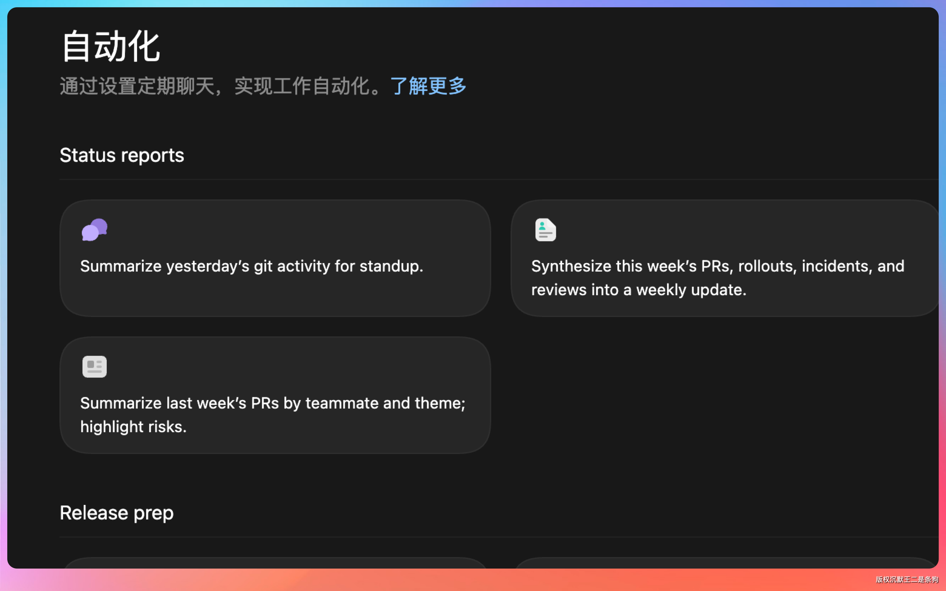 自动化:已经不是新概念,但这次有变化——自动化任务可以沿用一个已经跑过一轮的对话线程,把之前的上下文带进去继续。
