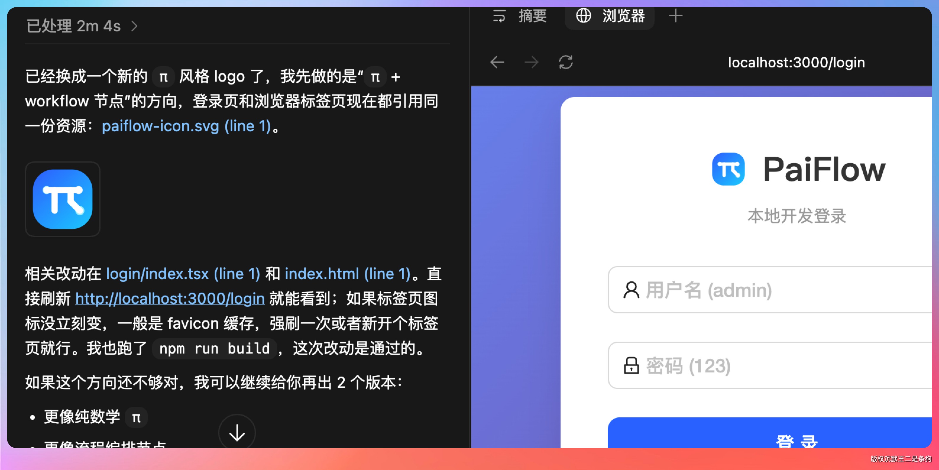 提示词:登录页需要一个 logo,你可以生成一个新的 logo,和 π 相关,我看看。