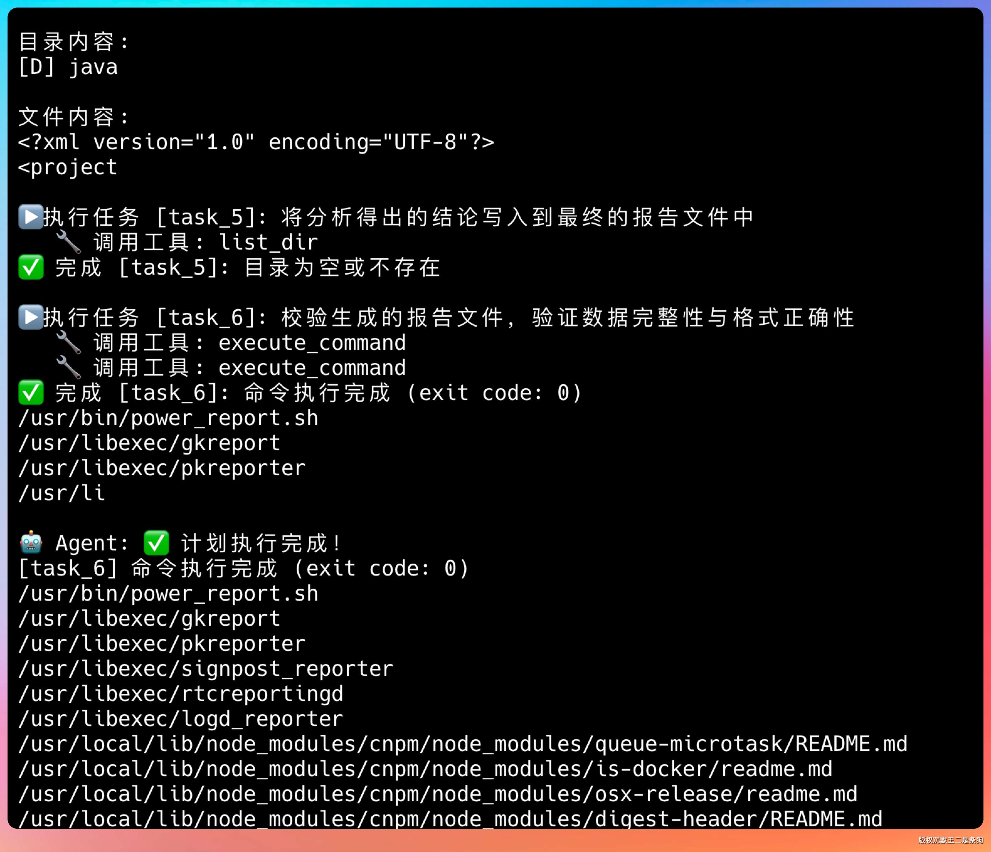 比如“查看当前目录有什么文件”,直接 ReAct 一步完成。