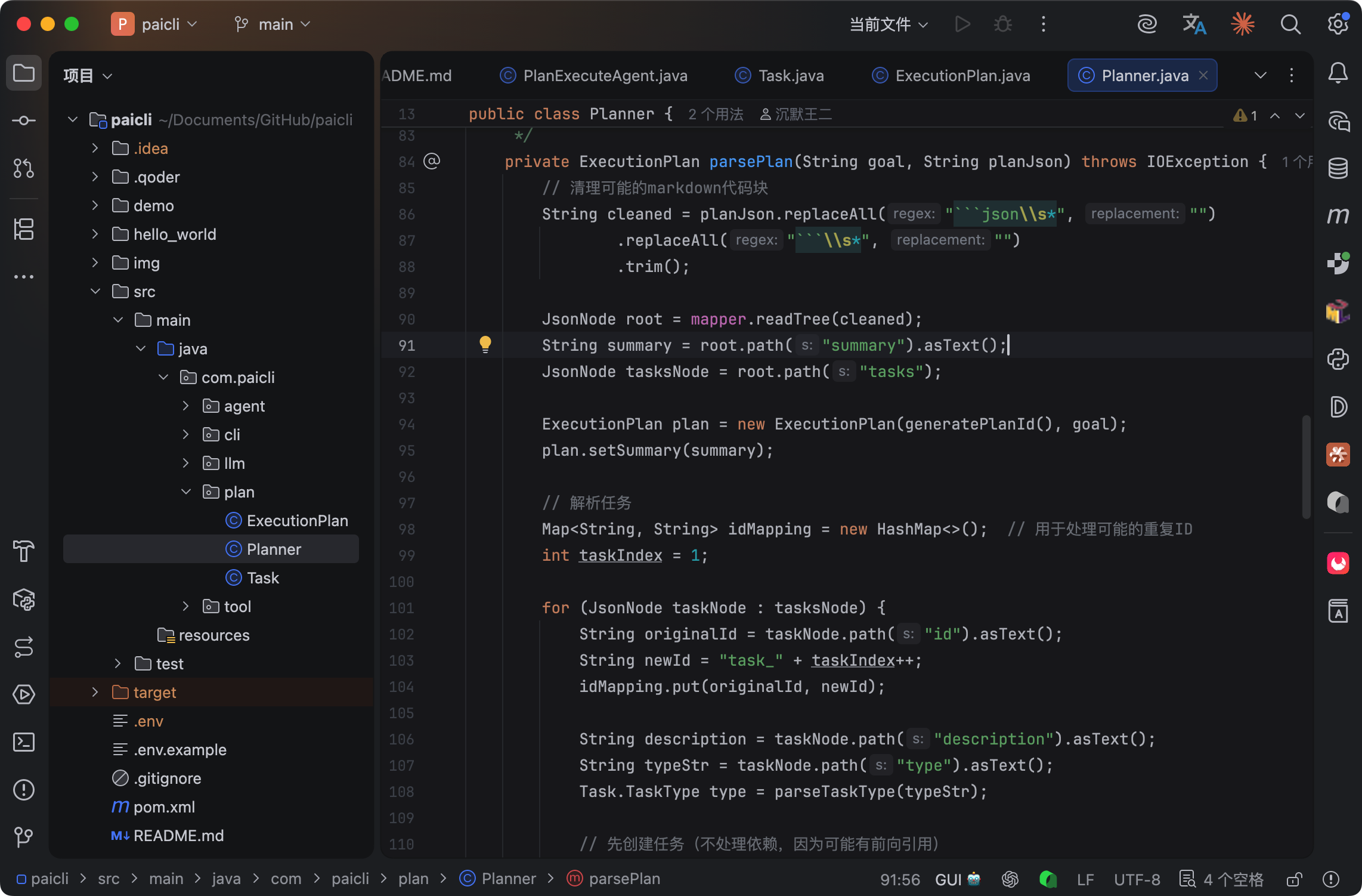 - 实现 PlanExecuteAgent,支持根据任务复杂度自动切换 ReAct 和 Plan-and-Execute 两种模式