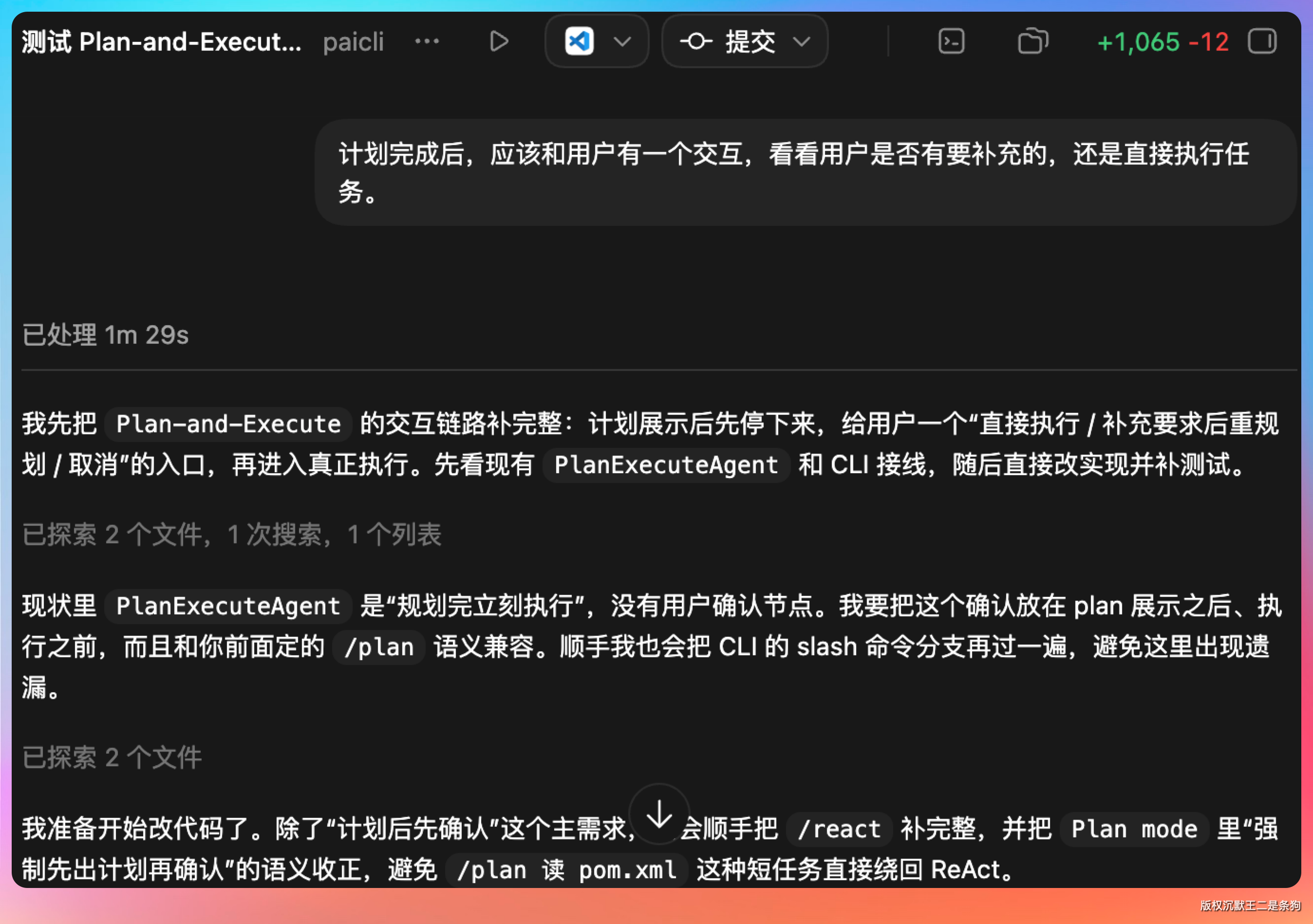 这里我们可以加一个交互,看看用户是否有要补充的,是否要修改计划,然后再开始执行计划。