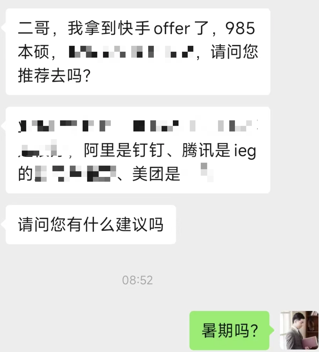 12、快手offer了,还有钉钉、腾讯、美团。