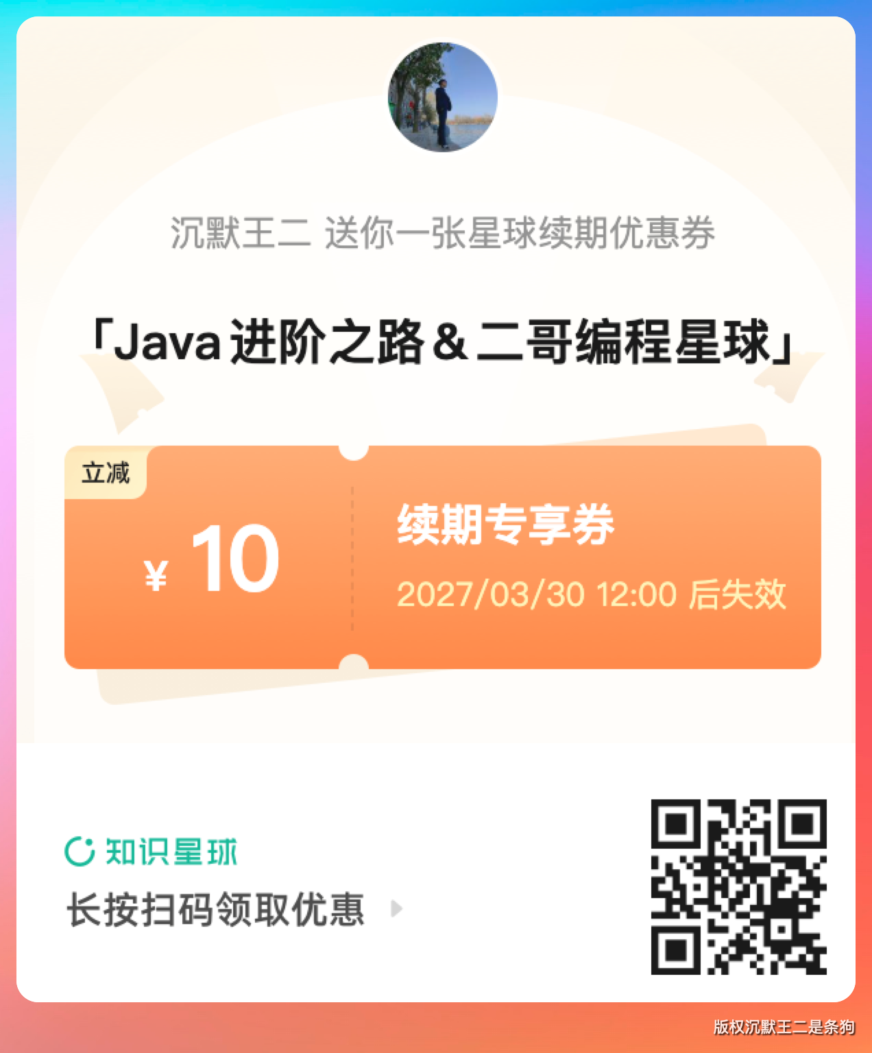 需要半价续费的球友可以扫下面这张额外的10元补贴优惠券,相当于 169/2-10=74.5元。