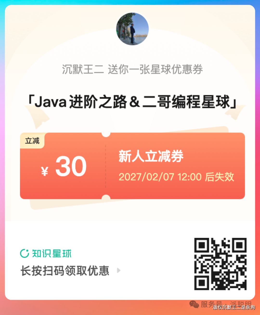 需要加入星球获取7大实战项目+4个付费专栏+简历修改+1V1指导的小伙伴可以扫下面这张 30元优惠券(仅需139元,性价比最高的求职辅导类星球,没有之一)。
