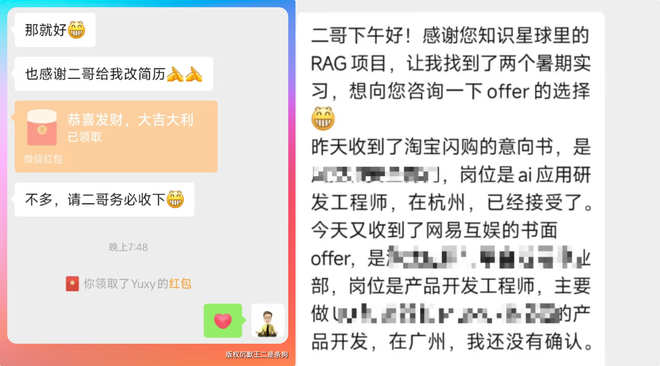 也感谢大家的口碑,祝大家都能前程似锦,这里做个记录,也是希望未来回头看的时候,自己曾经有帮助过大家,很有成就感😄,骄傲一把,😄