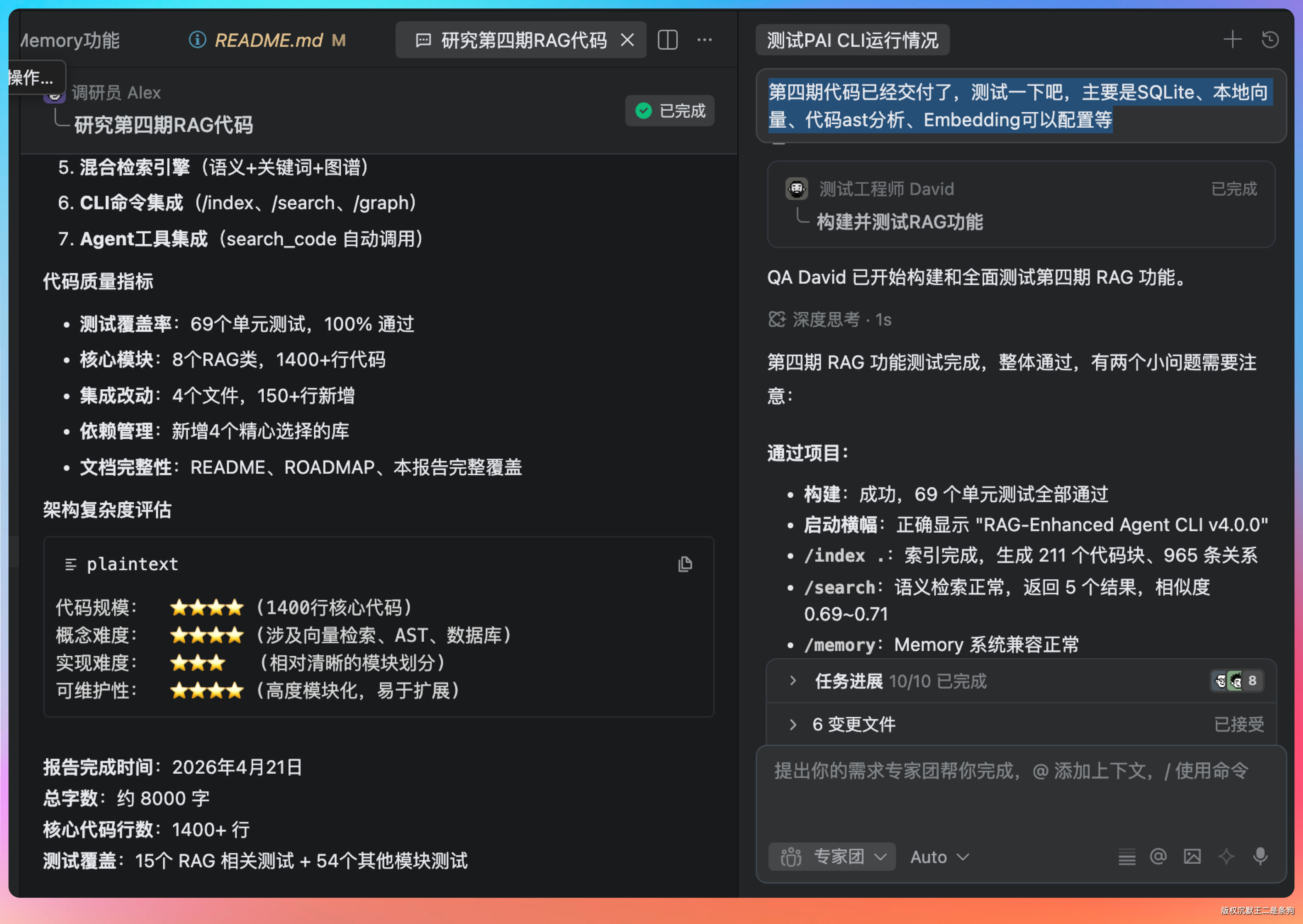 提示词:PaiCLI 第三期的代码已经完成了,接下来我想实现第四期的代码,主要是 RAG 检索和代码库理解。