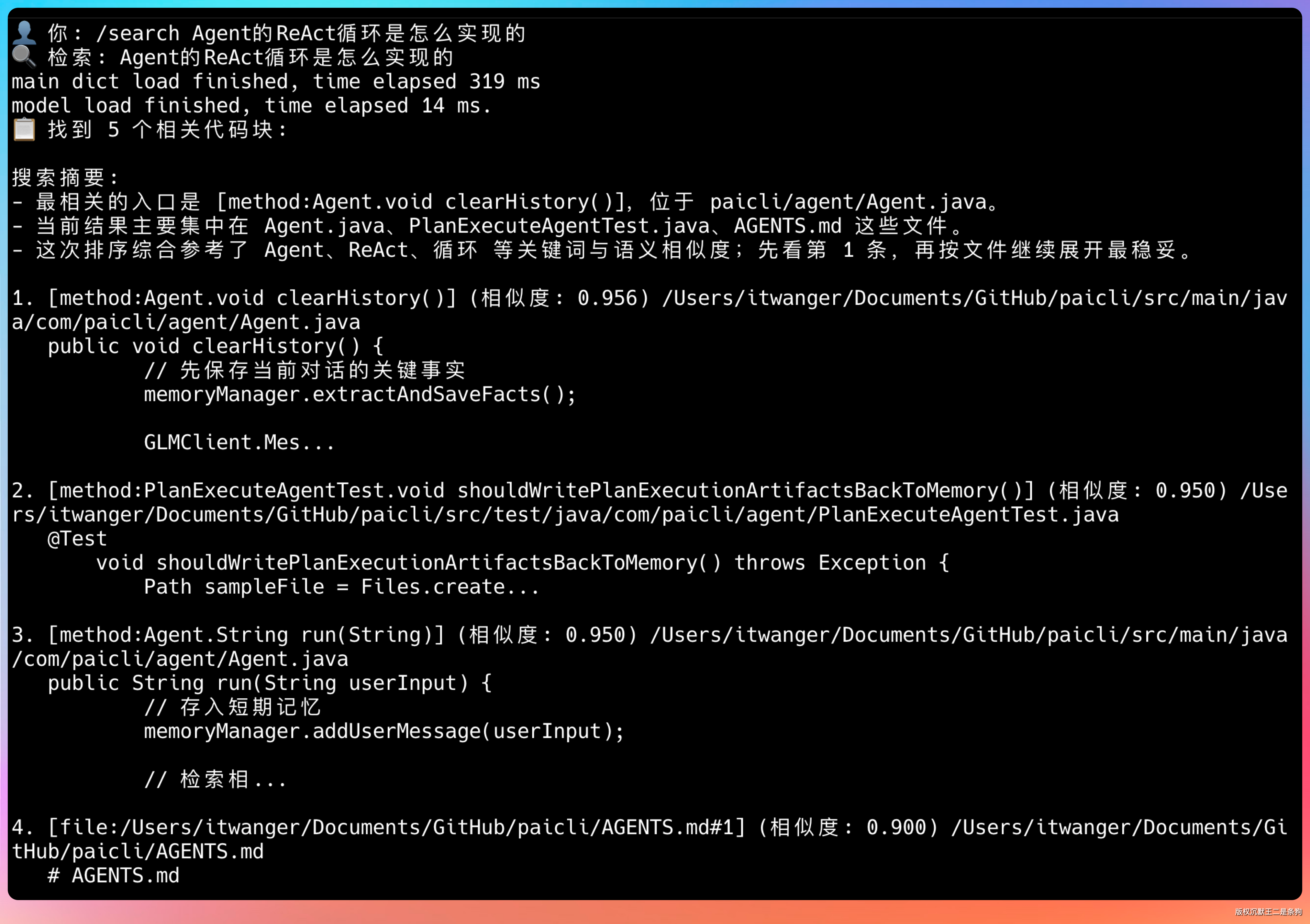 - Agent工具集成(search_code 自动调用)