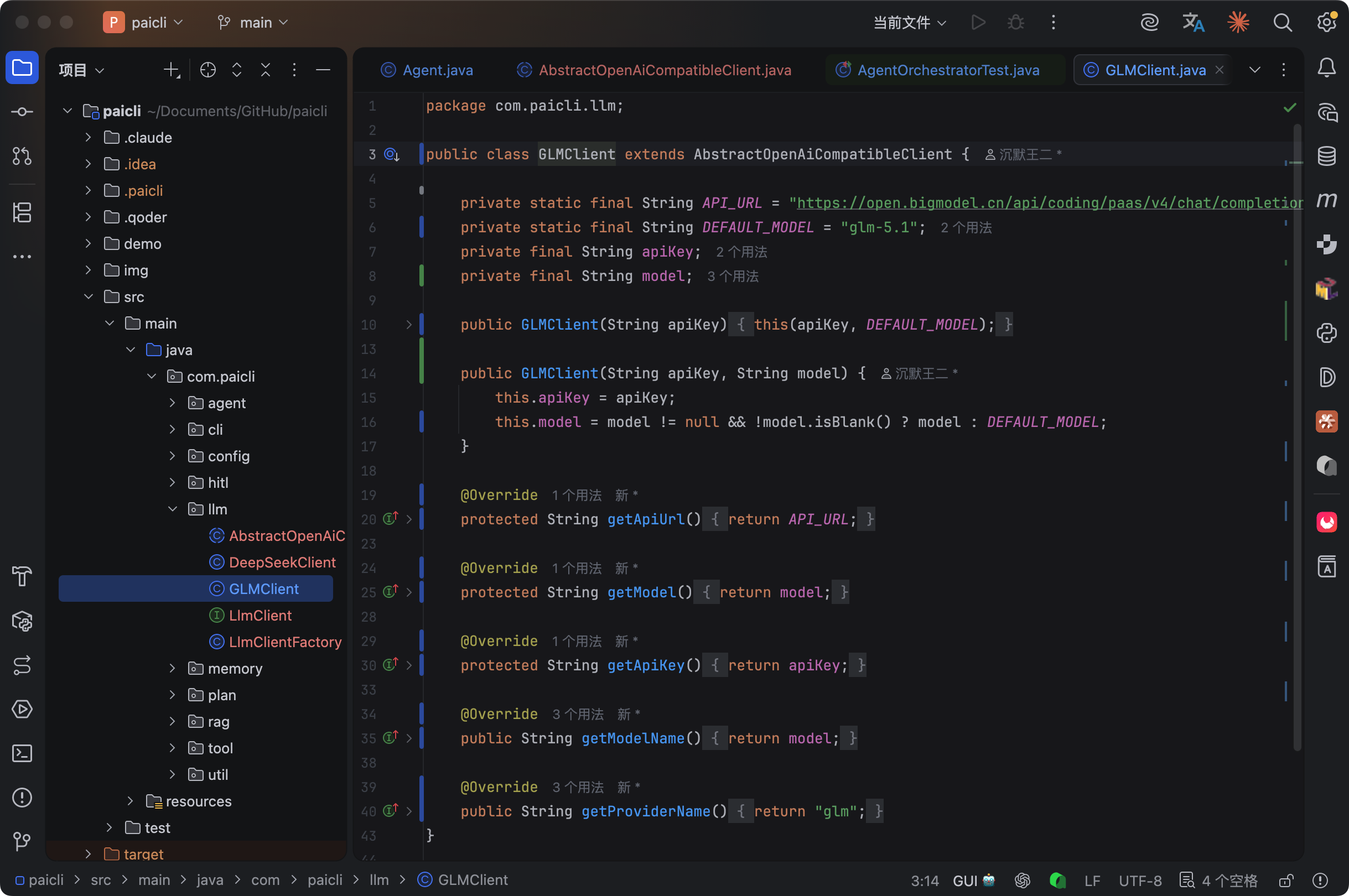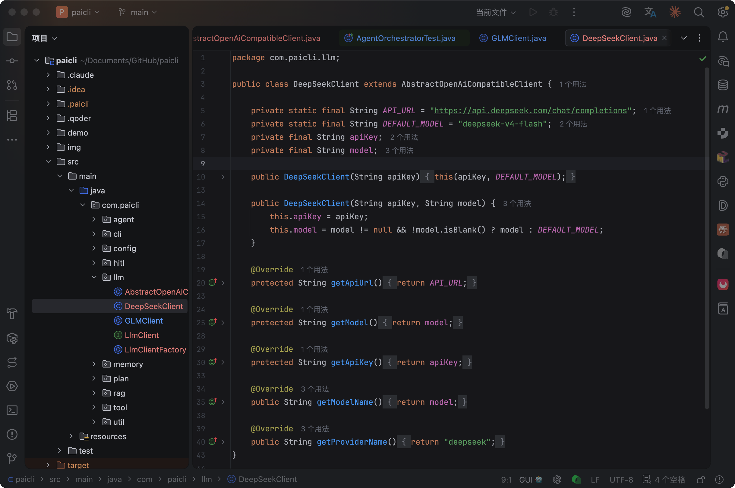 有了基类,GLMClient 和 DeepSeekClient 就变得非常简单: