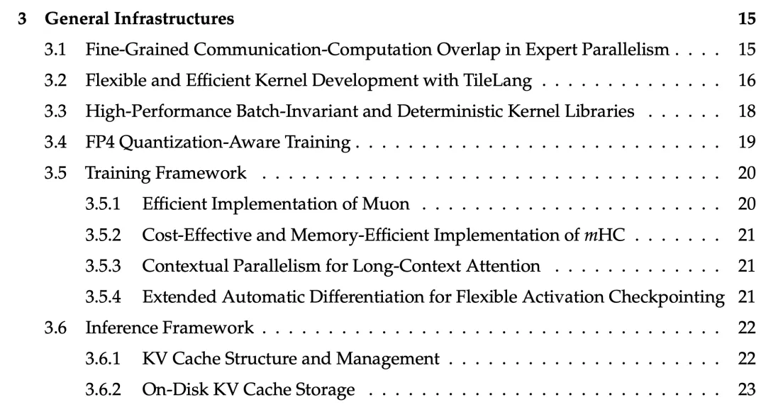 V4 的技术报告给基础设施单独写了一整章,这在大模型报告里挺少见的,说明 DeepSeek 这次在工程侧下了很大的功夫。