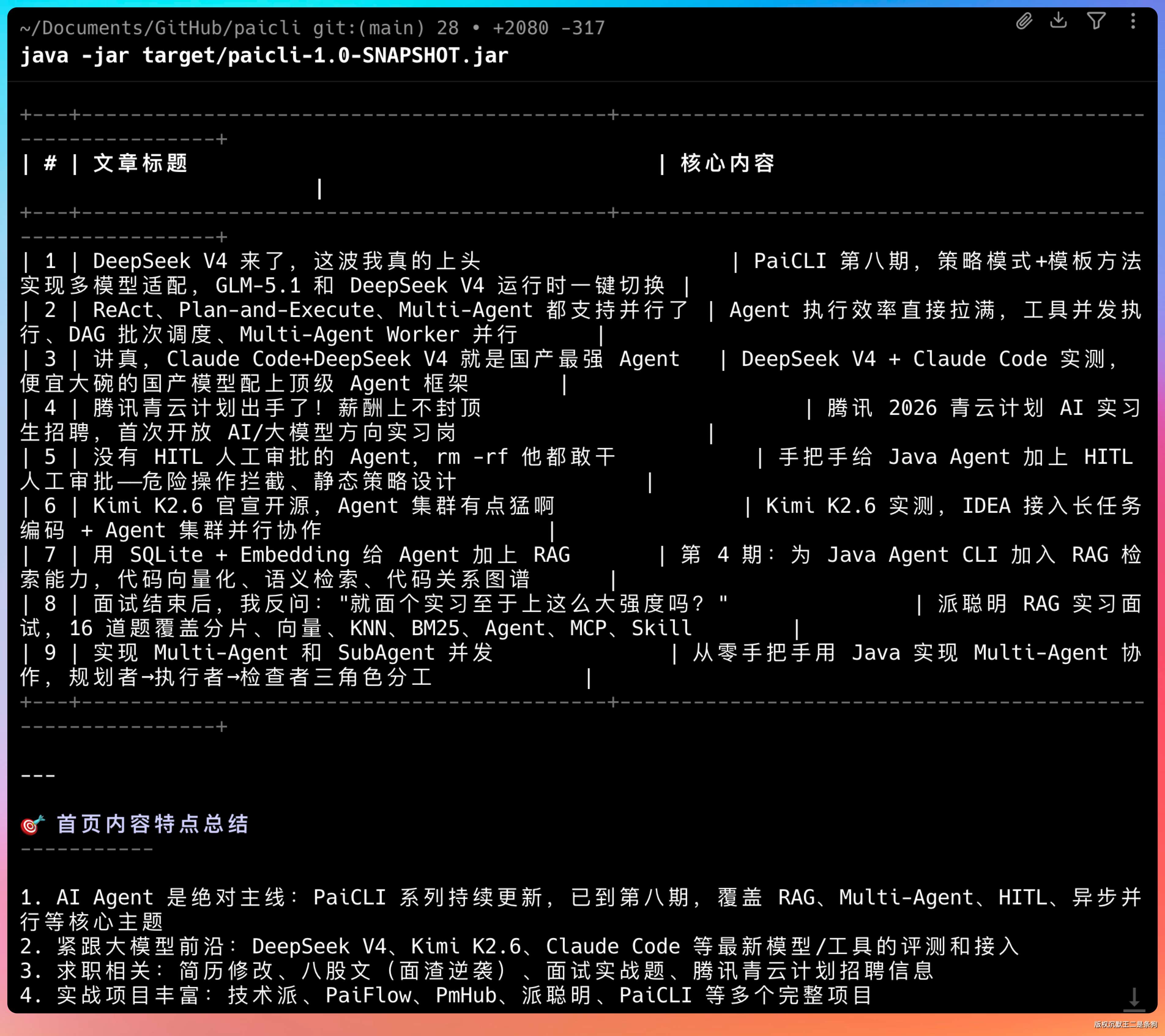 项目源码地址:https://github.com/itwanger/paicli,第 9 期的代码已经全部提交。