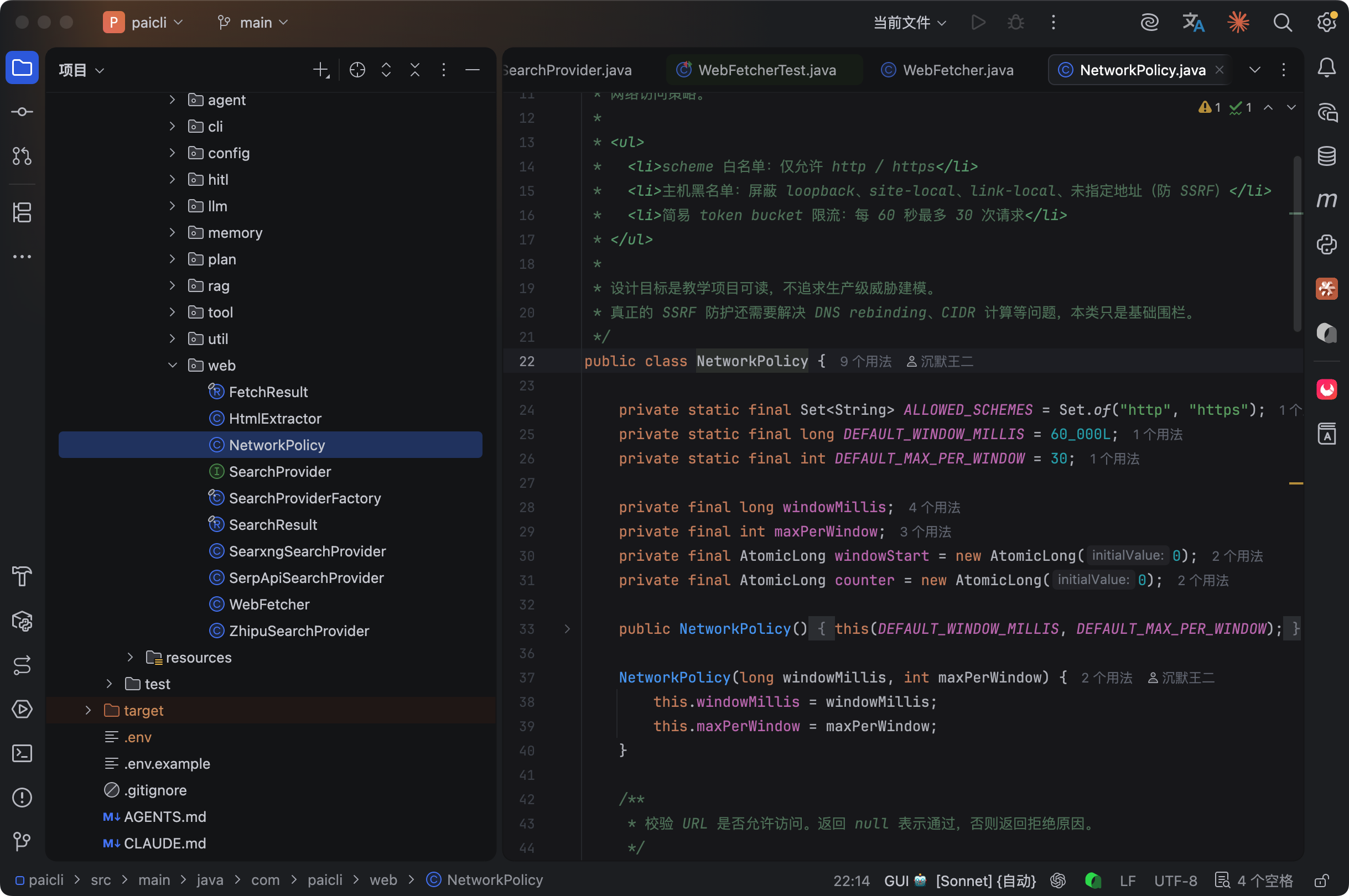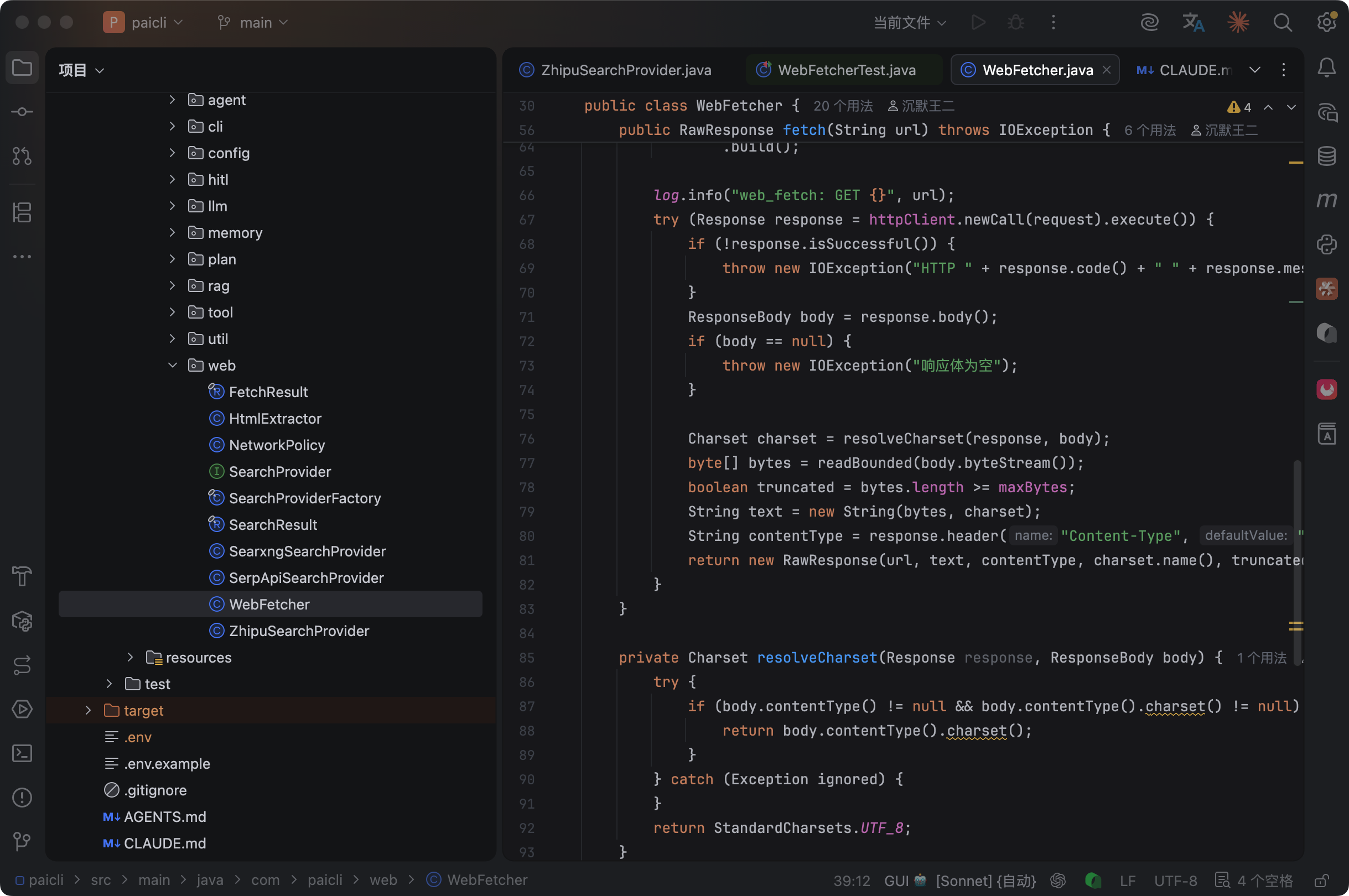 PaiCLI 的联网模块放在 com.paicli.web 包下,一共 8 个类,分工明确。