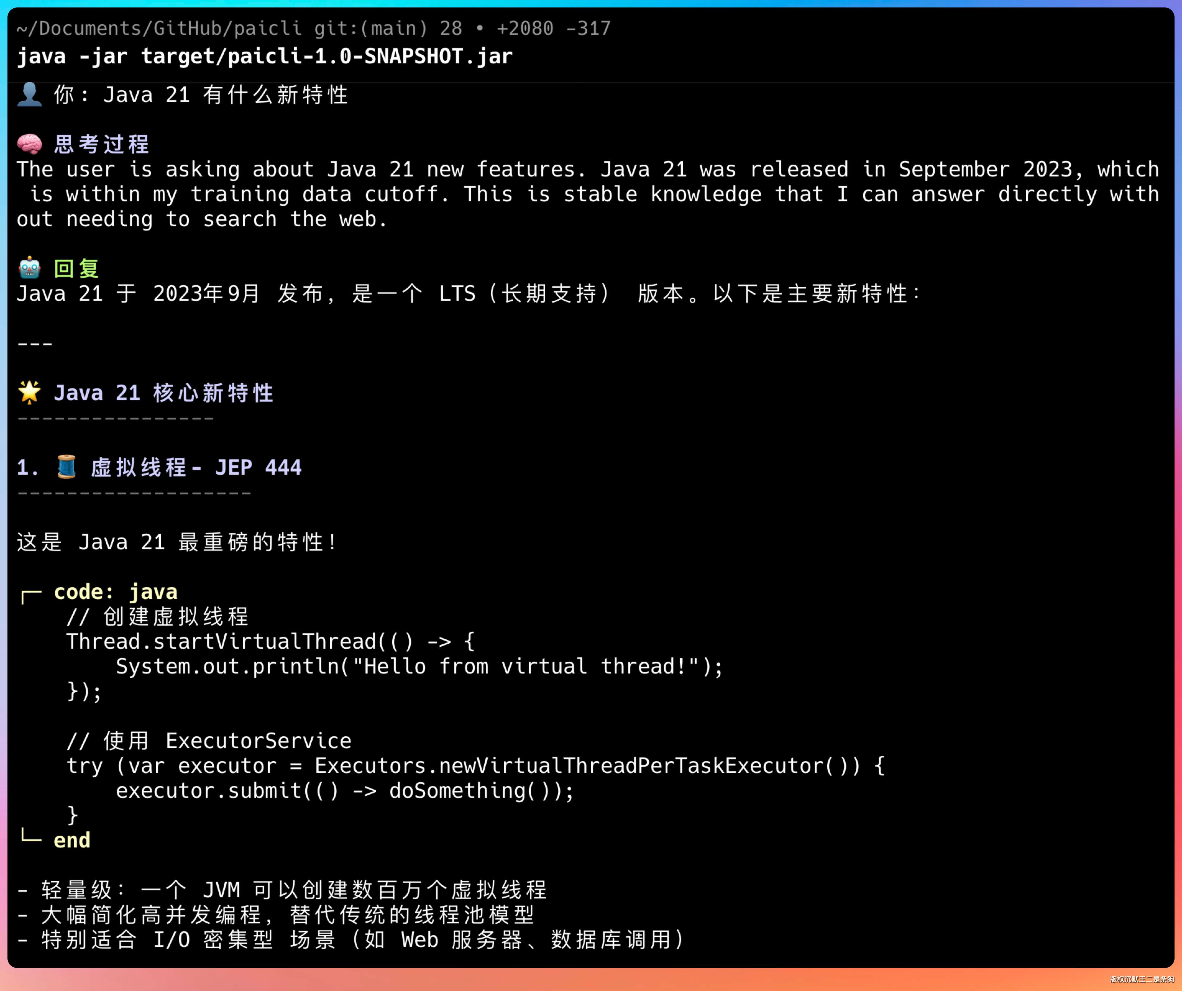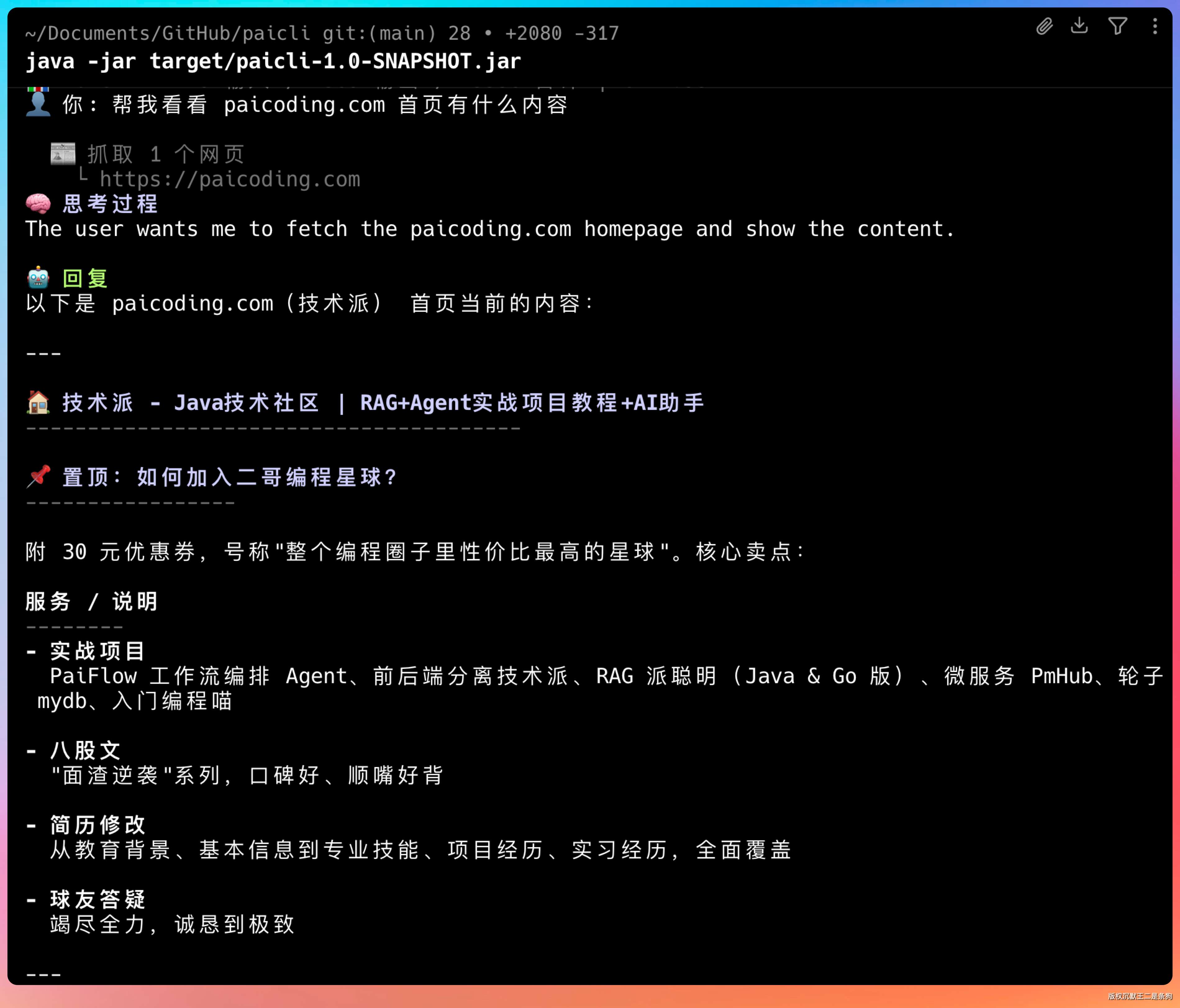 - 项目名称:PaiCLI - Java Agent CLI