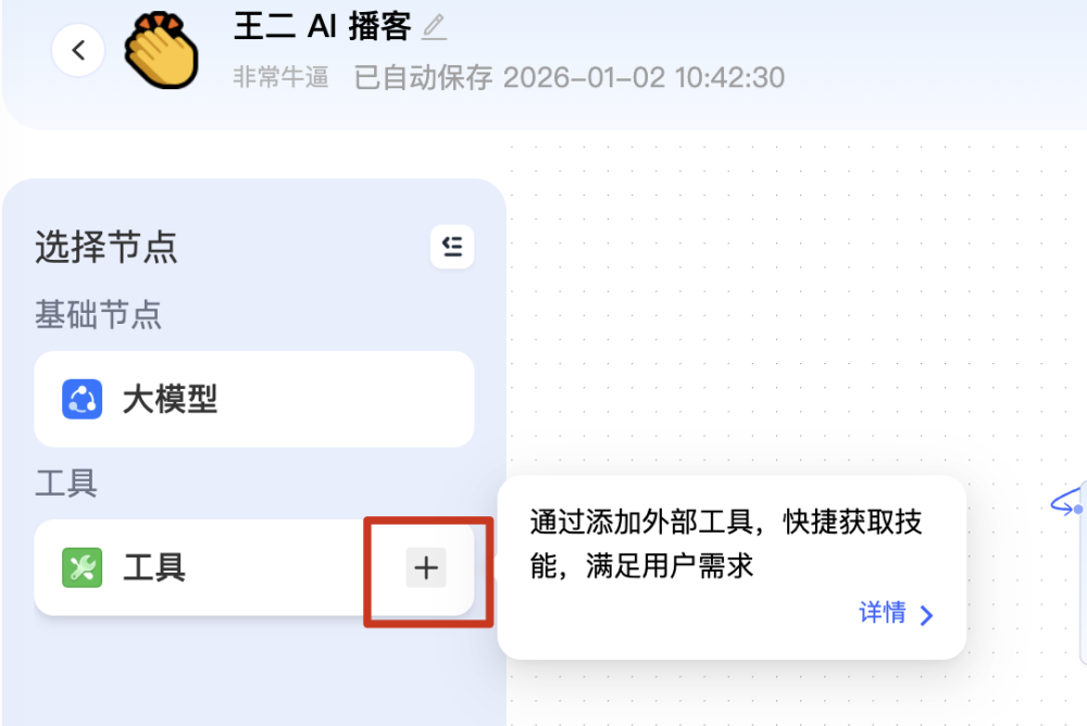 还有一种入口是在资源管理这里点击【新建插件】,适合我们提前规划好某个工具,然后在编排工作流的时候直接使用。