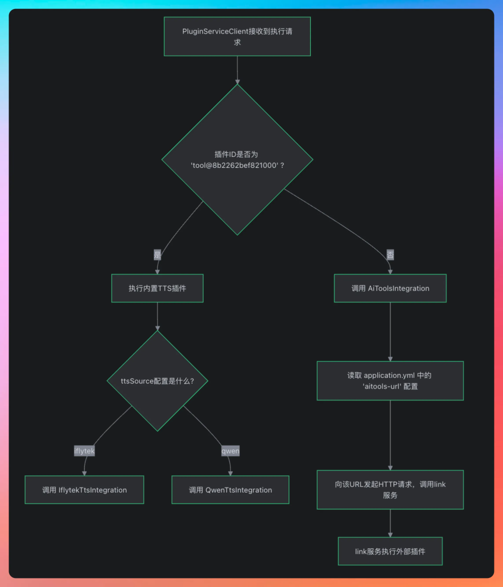 回到上一篇插件节点执行器。PluginNodeExecutor 只做插件节点的执行,具体怎么调工具完全由 PluginServiceClient 接管。