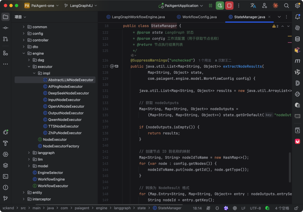 在 PaiAgent 中,我们通过 StateManager 来管理 AgentState 的初始化、更新和提取。