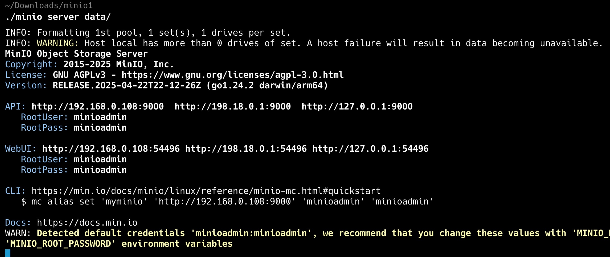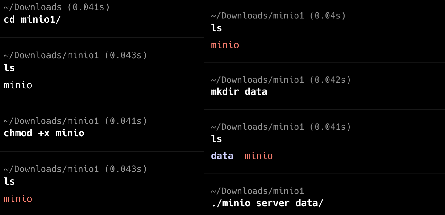 执行 chmod +x minio,然后为 MinIO 创建一个数据目录 data,之后执行 ./minio server data/就可以启动了。