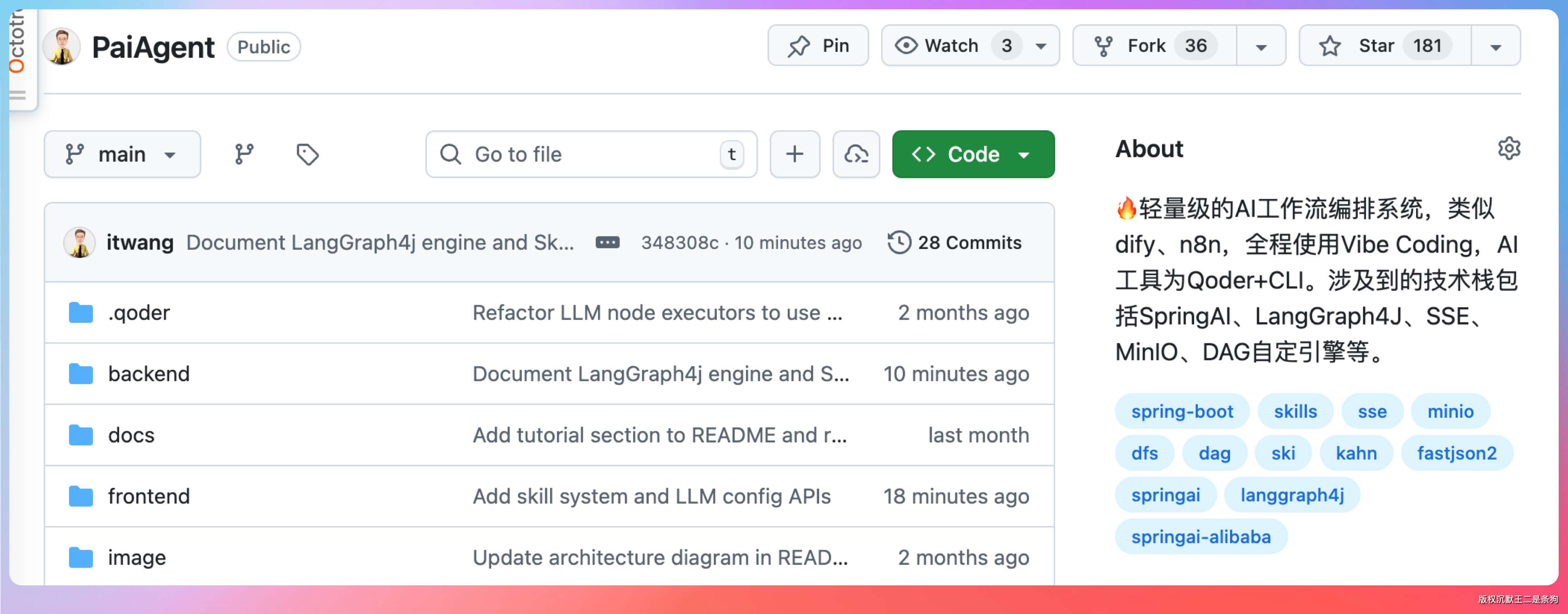 “王哥,你继续,我对 PaiAgent这个项目还是自信的,一手Vibe Coding完成的,在GitHub上也有快200 star 了。”