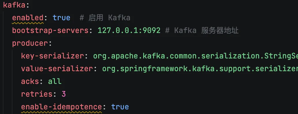 这意味着,当生产者发送消息失败时,它会自动尝试重新发送,最多 3 次。同时, enable.idempotence: true 的配置也能确保即使在重试过程中,消息也只会被写入一次,避免了因重试导致的数据重复问题。