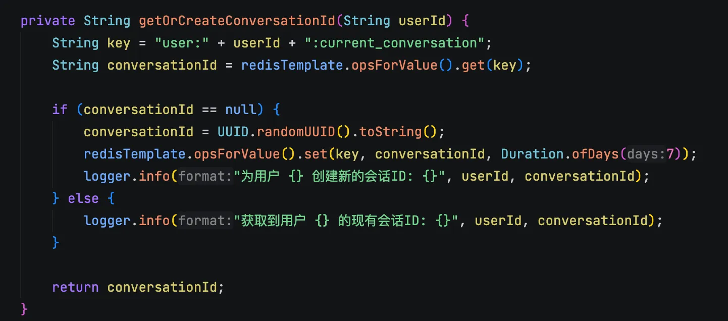 派聪明当前采用了基于 Redis 的对话历史管理机制,每个用户都有一个唯一的会话 ID,所有的对话内容都按照时间顺序存在 Redis 中,并设置了 7 天的过期时间。