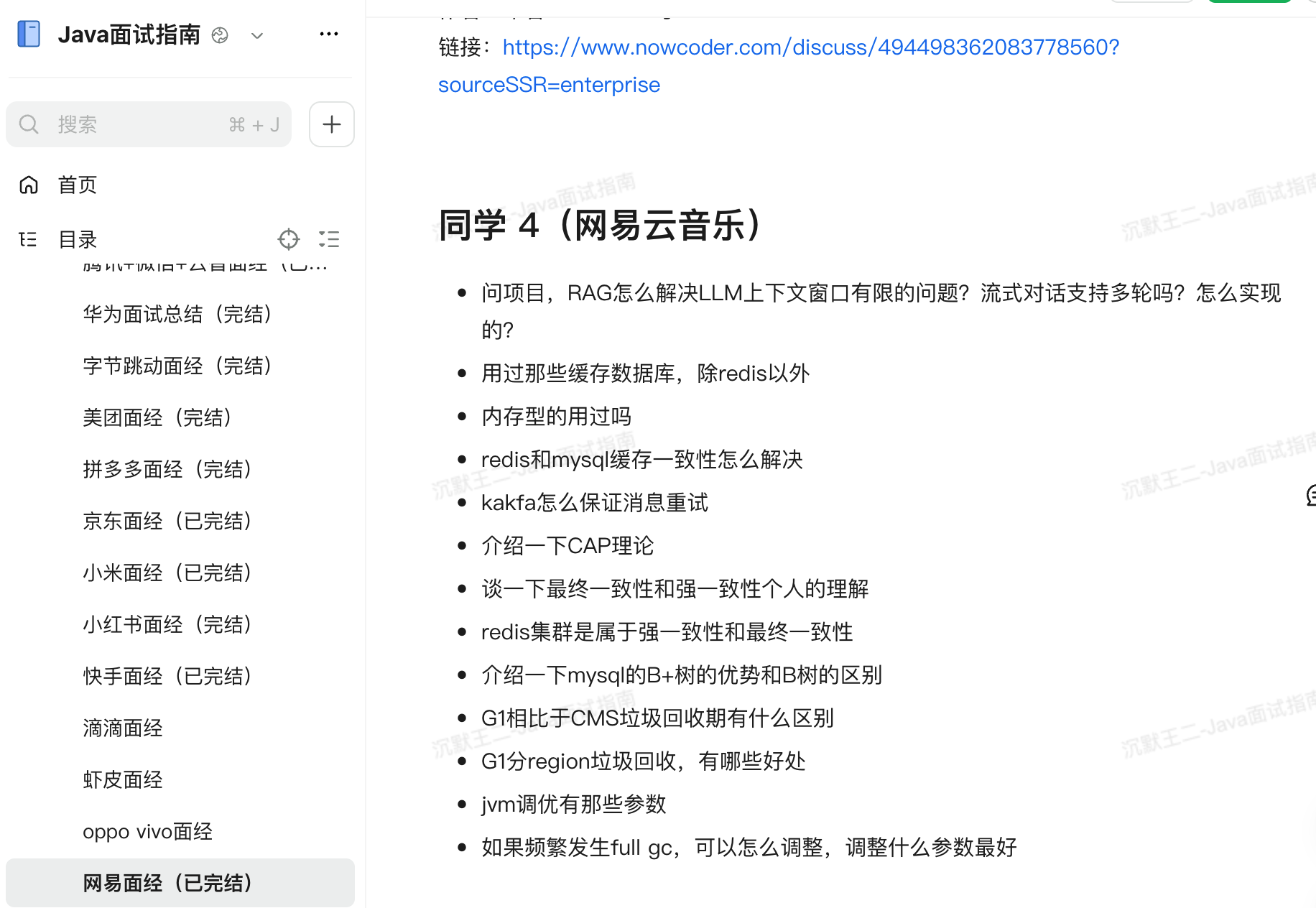这次我们就以榜单上的第五名网易为切入点,来复盘一下《Java面试指南》里收录的《同学 4(网易云音乐)》面经,下次碰到原题的同学一定要过哦。