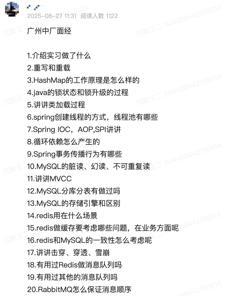 接下来,我们再来复盘一位球友的面经,他标注的是广州中厂,没说名字。不过大家看完后应该会有很多熟悉的题目映入眼帘。