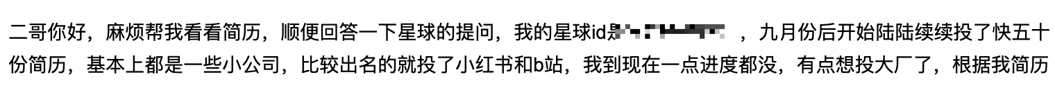 我也建议大家拓宽一下投递的范围,不要局限于大厂(至少先有个保底)。当然了,大、中、小具体怎么定义,没有国标,所以我改简历的时候碰到有球友把 B 站和小红书归到小公司的。