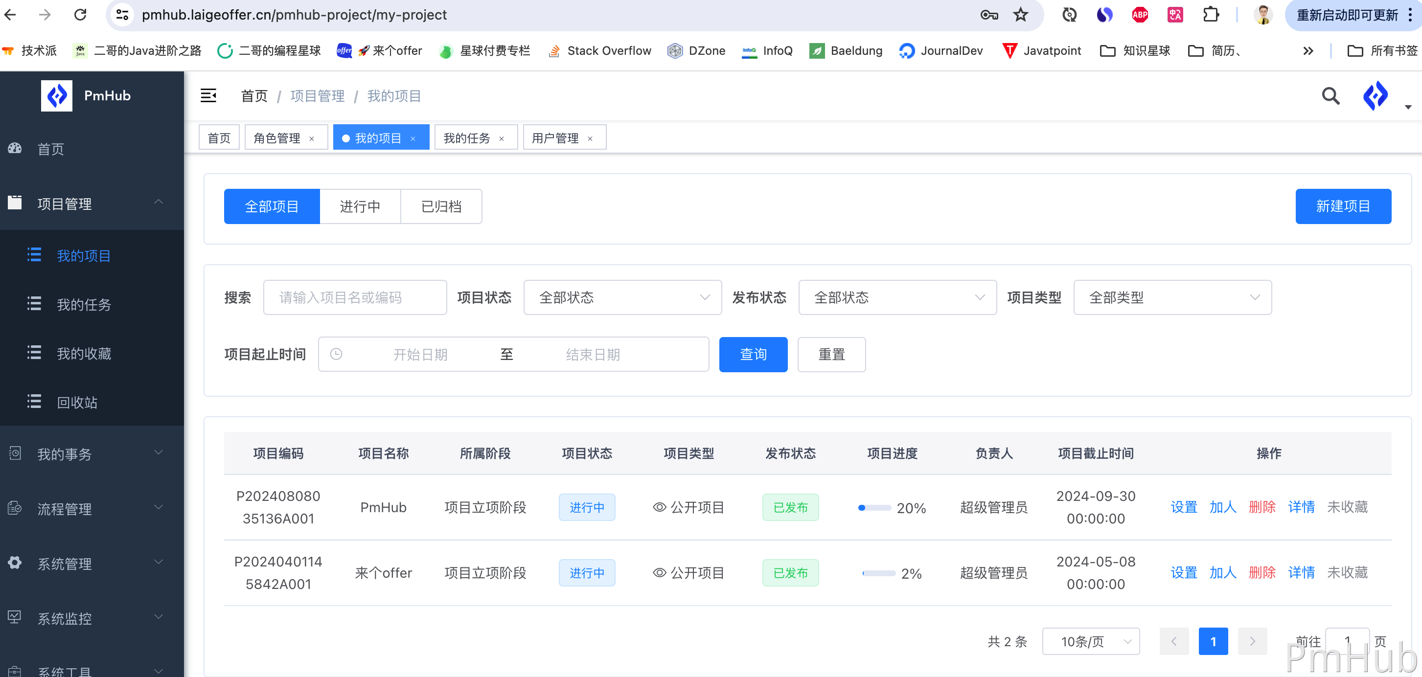 我在项目中主要负责 project 模块的后端开发,该模块是 PmHub 的核心,可以自定义项目和任务,以及分配任务,还可以在任务中添加评论,任务完成后可以通过审批流进行任务流转,实现项目-任务之间的完美闭环。
