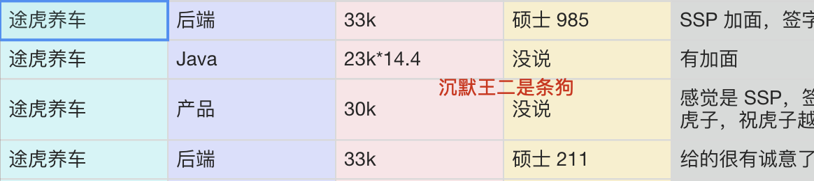 途虎养车今年校招薪资真的杀疯了,比肩一线梯队的互联网大厂,以至于有几个拿到途虎养车 offer 的球友感慨说秋招签三方太早了,真的很想毁约签虎子。