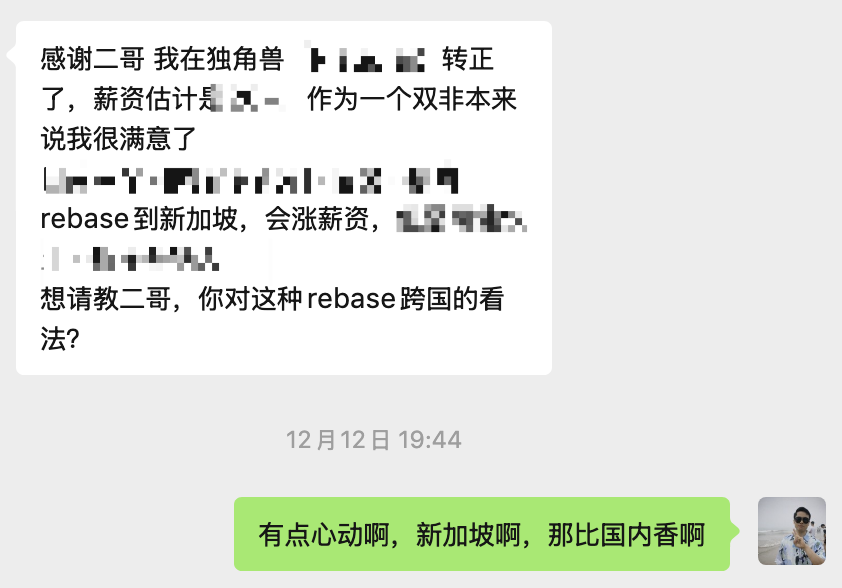 在独角兽的暑期实习顺利转正,拿到的薪资非常满意,问我要不要 rebase 到新加坡。