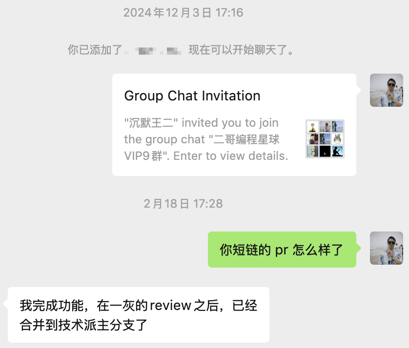 他是一个非常注重实战能力的球友,刚加入星球没多久,就给我说要追加一个短链接分享的功能,后来也成功合并到了主分支。