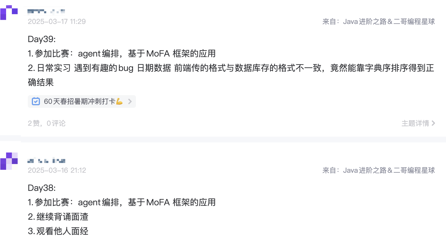 一个人可以走得很快,但一群人才能走得更远。二哥的编程星球已经有 11100 多名球友加入了,如果你也需要一个优质的学习环境,戳链接 🔗 加入我们吧。这是一个 简历精修 + 编程项目实战(RAG 派聪明 Java 版/Go 版本、技术派、微服务 PmHub)+ Java 面试指南的私密圈子,你可以阅读星球专栏、向二哥提问、帮你制定学习计划、和球友一起打卡成长。
