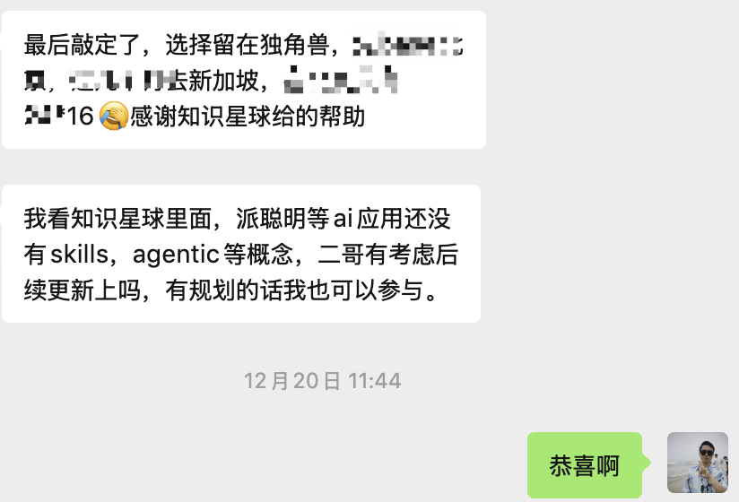 星球里今年也有球友(双非本)拿到一家独角兽的 offer,做 AI 的,问我要不去选 base 新加坡,我是强烈建议他选。
