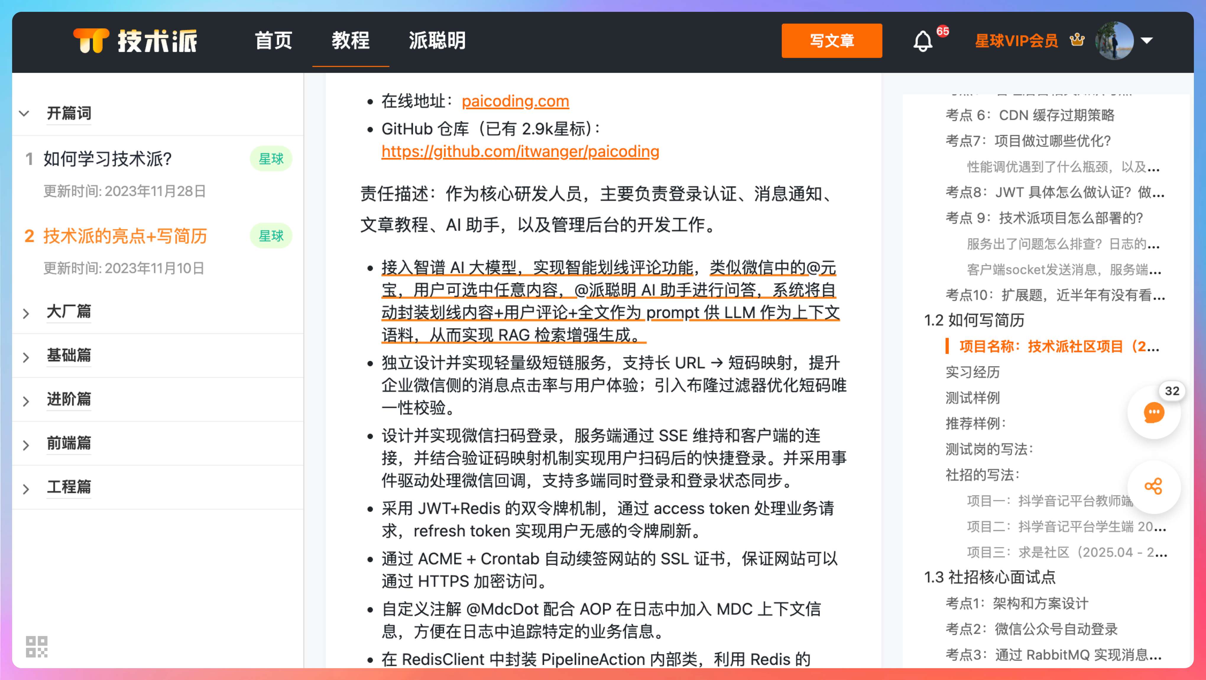 同时也很注重八股和项目实战,面渣逆袭提交了很多 PR,星球的项目也一直在跟进。