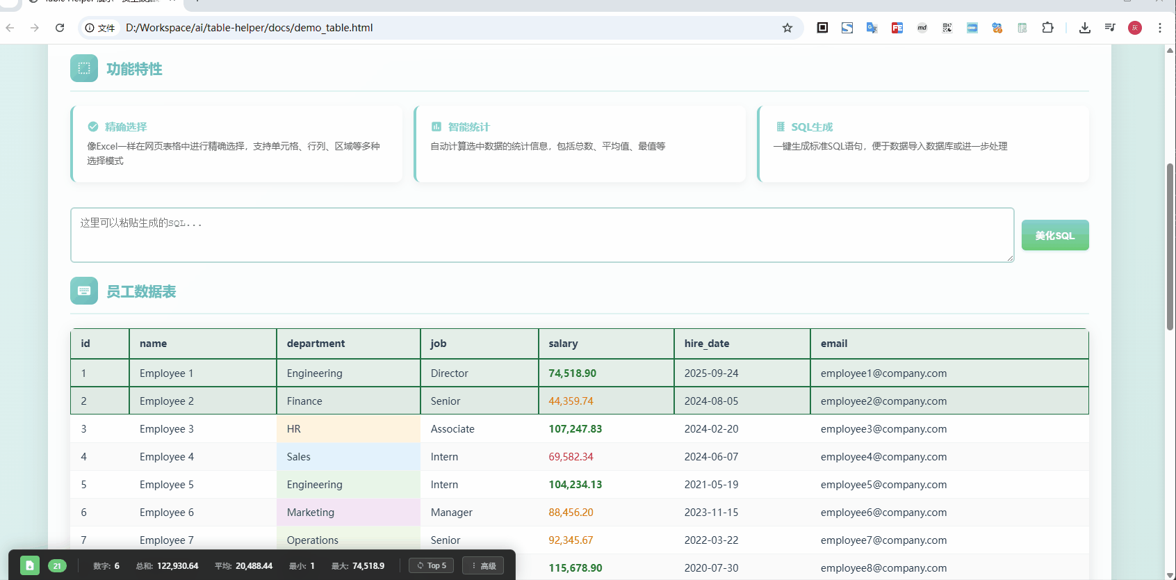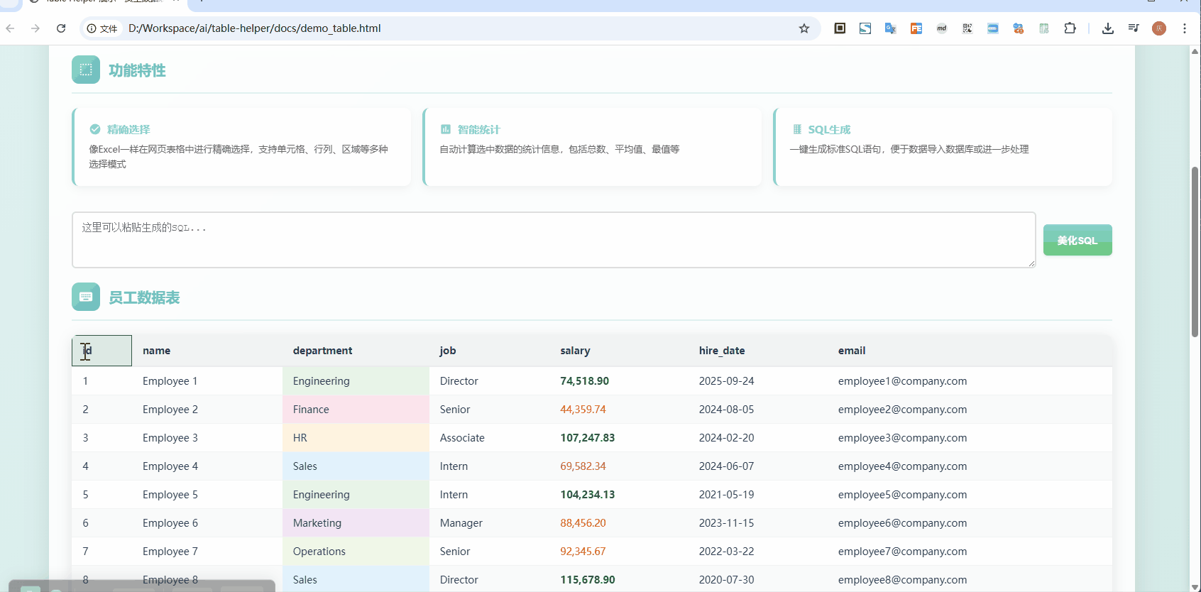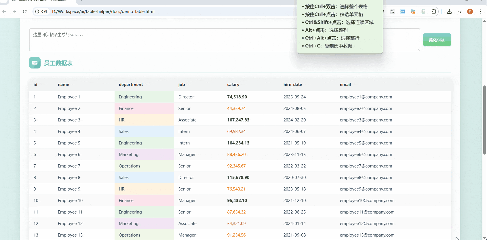 像Excel一样选择网页表格 & 支持选中表单生成sql的神器:TableHelper