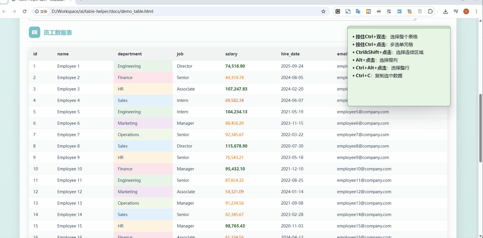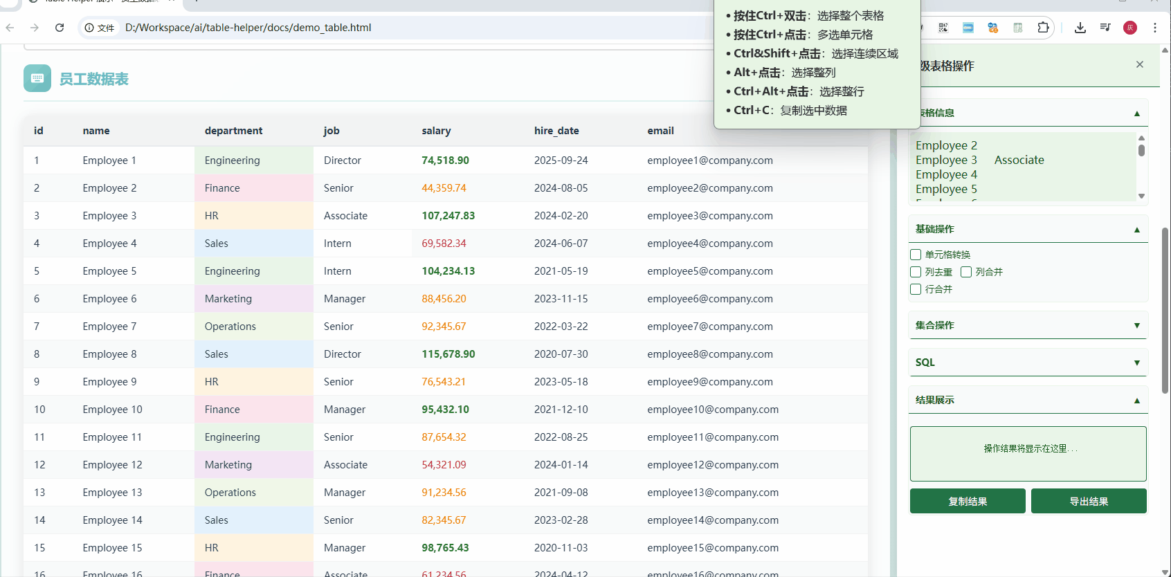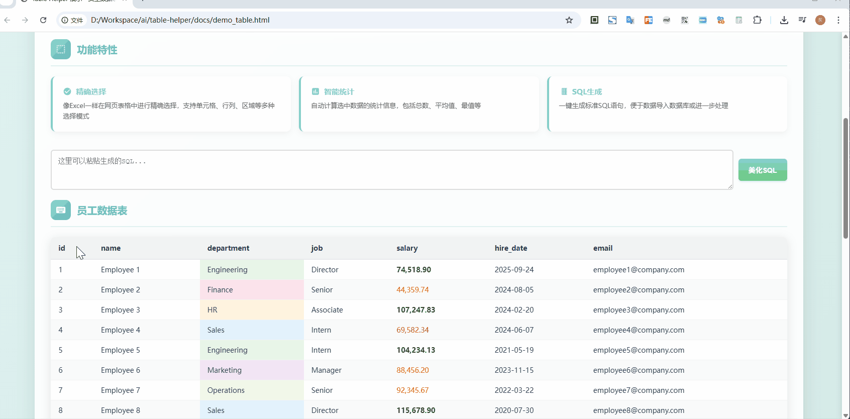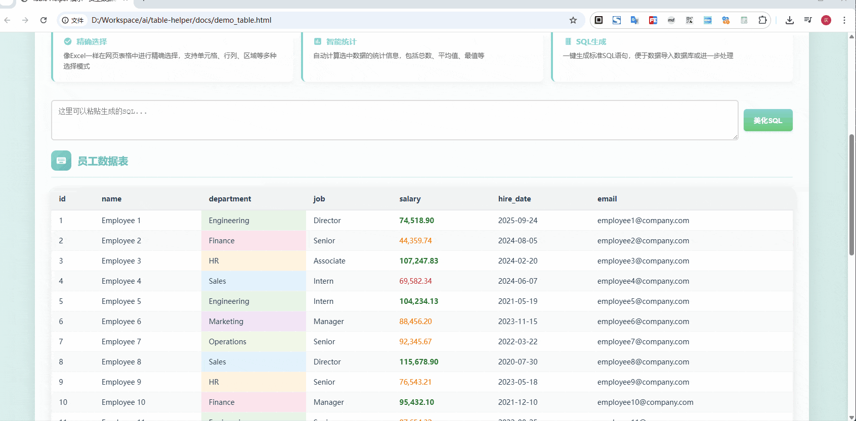 像Excel一样选择网页表格 & 支持选中表单生成sql的神器:TableHelper