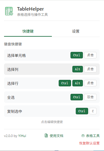 使用TableHelper之后,自由选中行列就非常方便了(默认的设置中,选中列时,是不携带表头的,如果有需要可以在设置中打开哦~)
