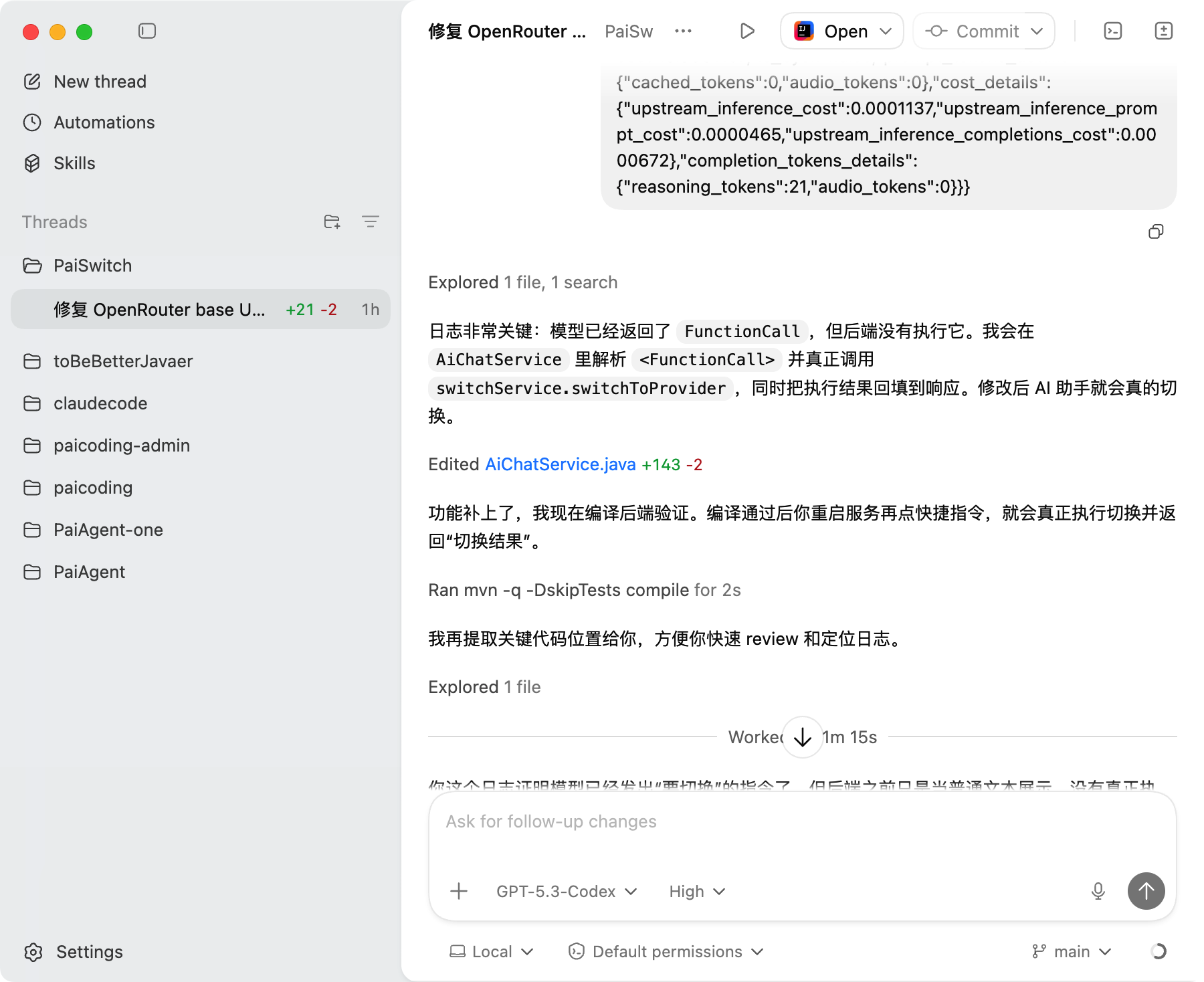 它没有急着改代码,而是先分析了一波:Function Calling 的执行链路是什么样的?当前代码和预期行为差在哪里?