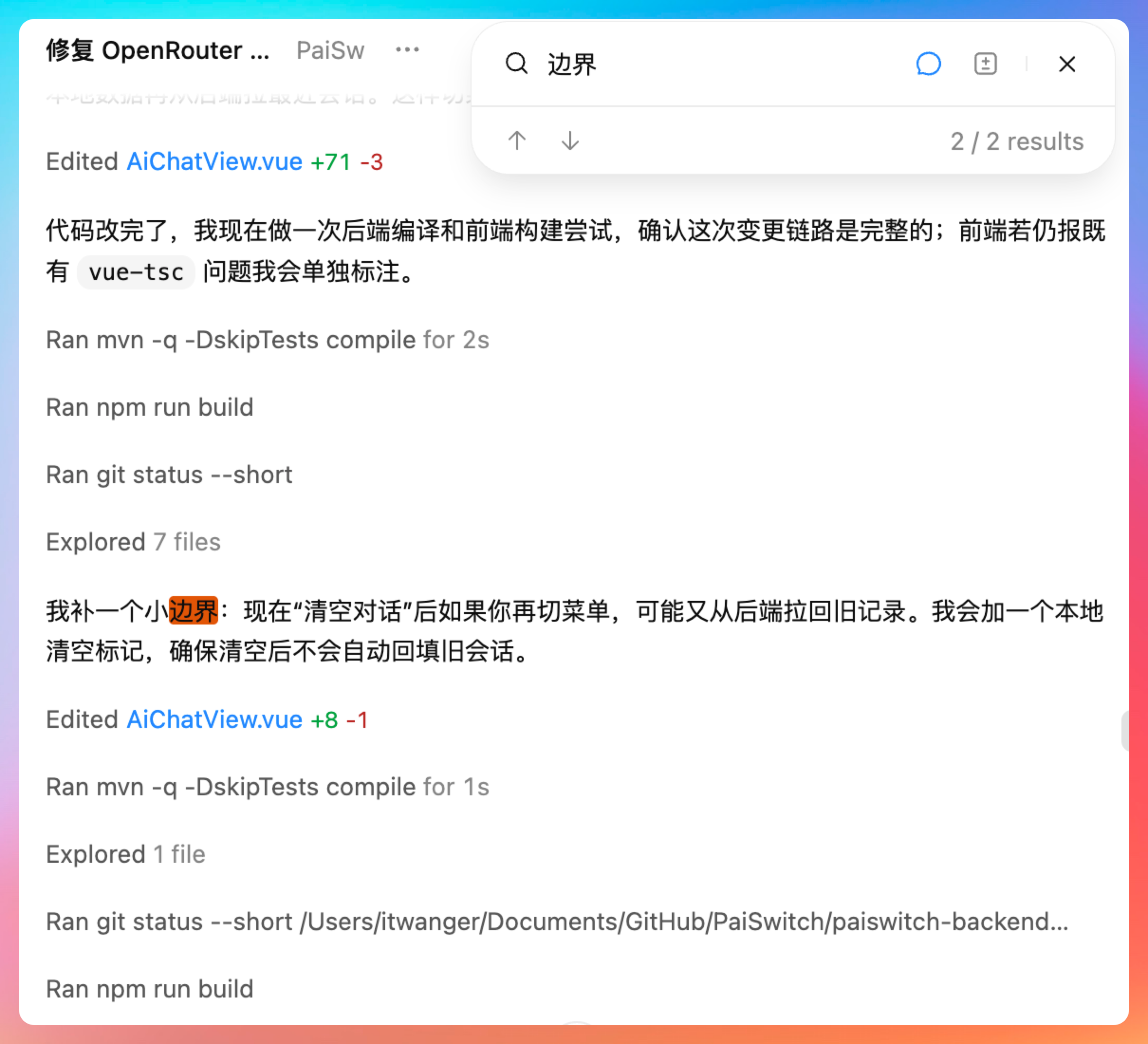 比如说,后续我想让PaiSwitch作为一个容器,把Claude Code嵌入进来,然后把历史记录持久化到MySQL中,并且利用ElasticSearch做一个混合检索,不仅支持关键字还支持语义检索,算是RAG的另外一个应用场景吧。