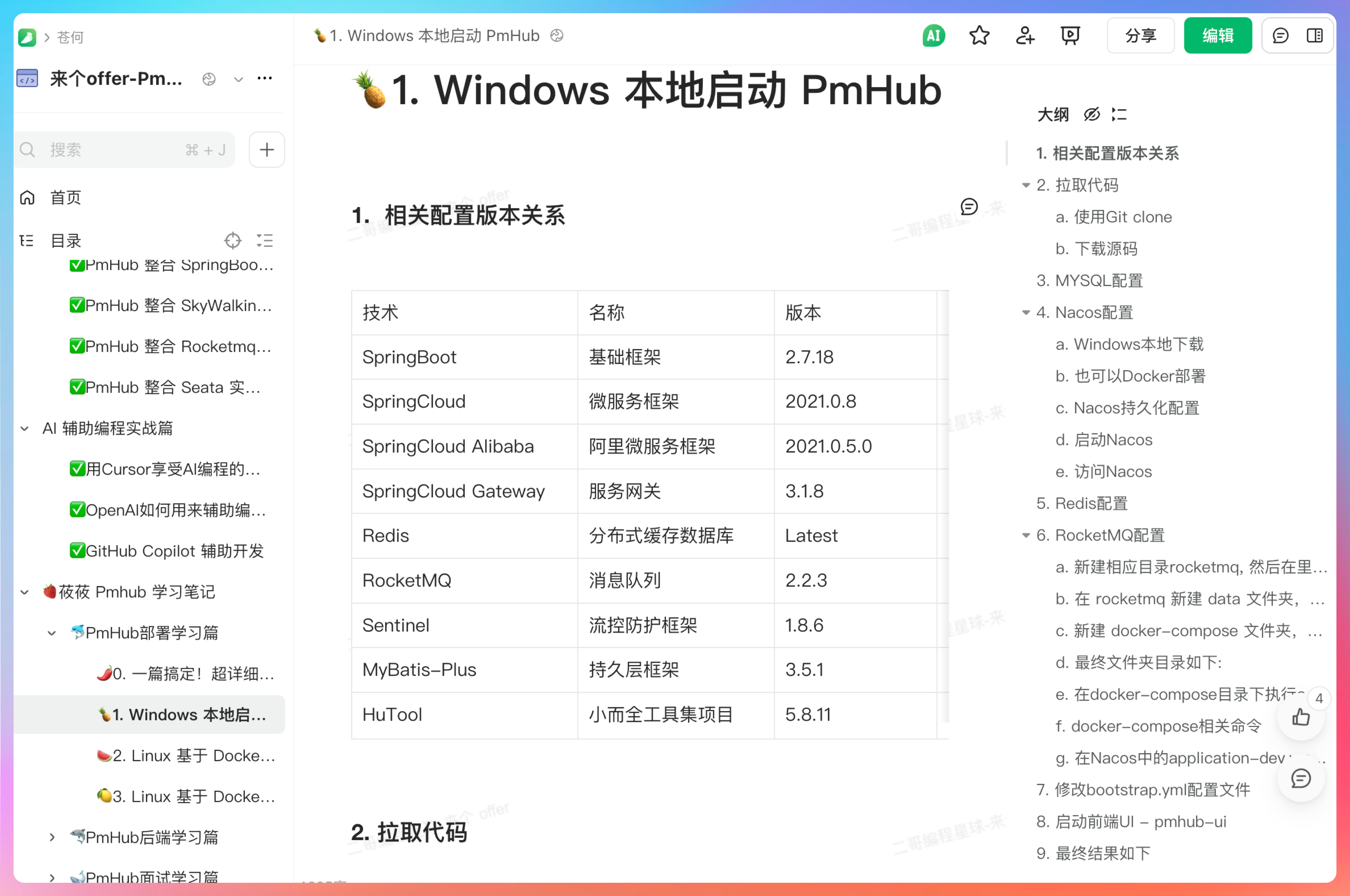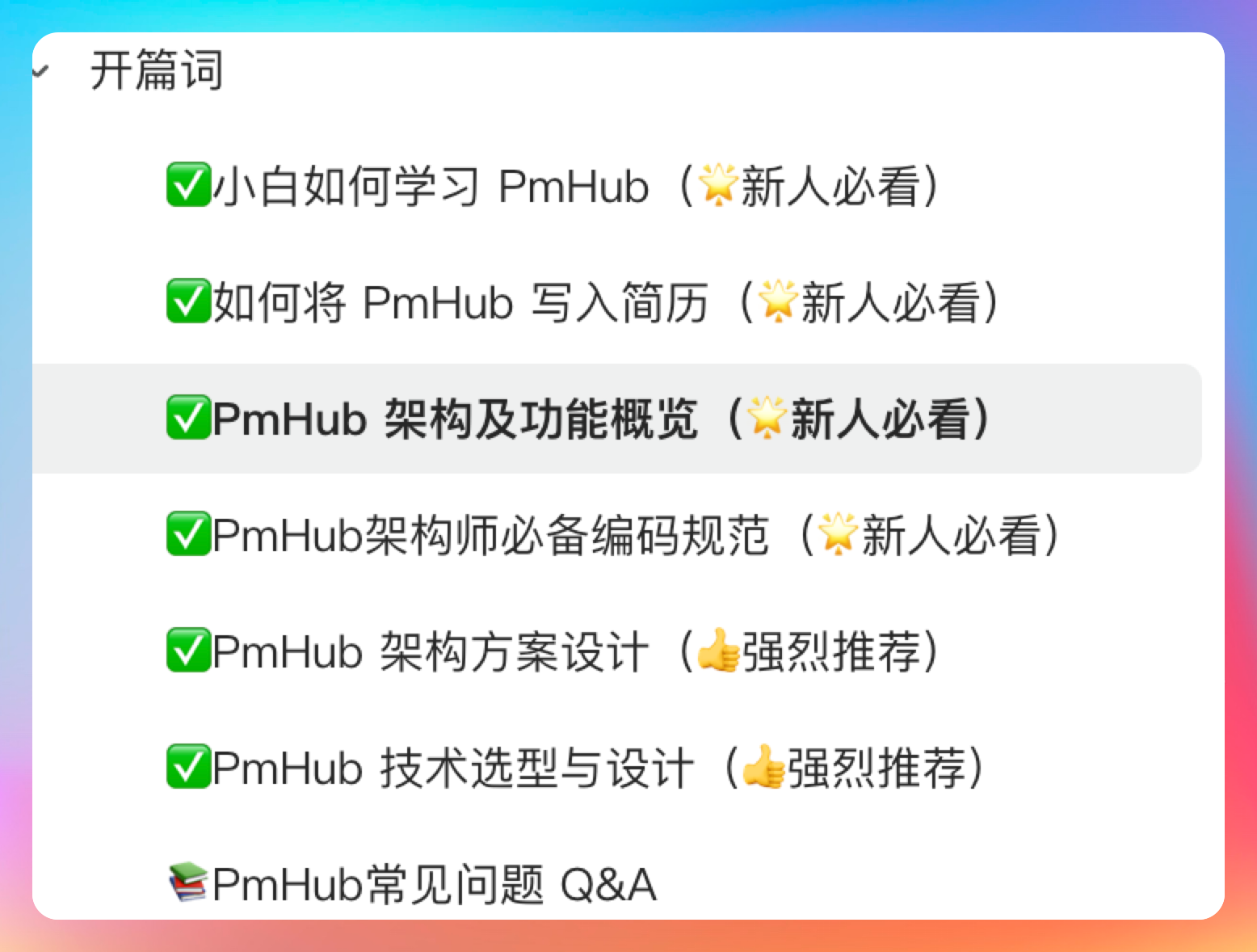 今天再给大家分享一下微服务 PmHub的学习路线。你可以套用到任何一个开源的项目上去。